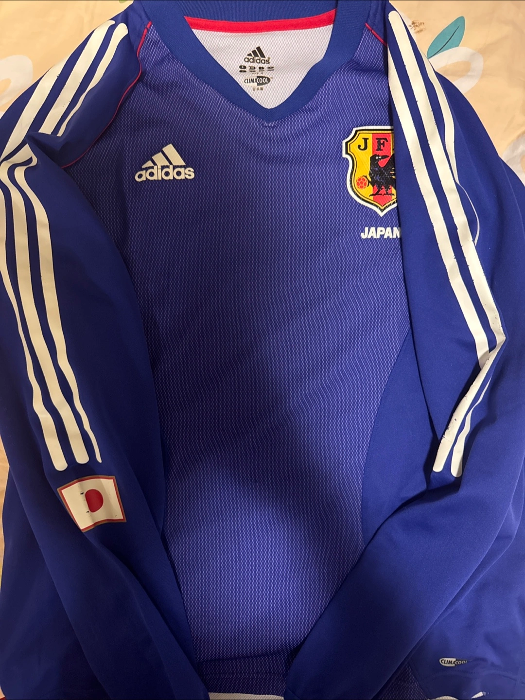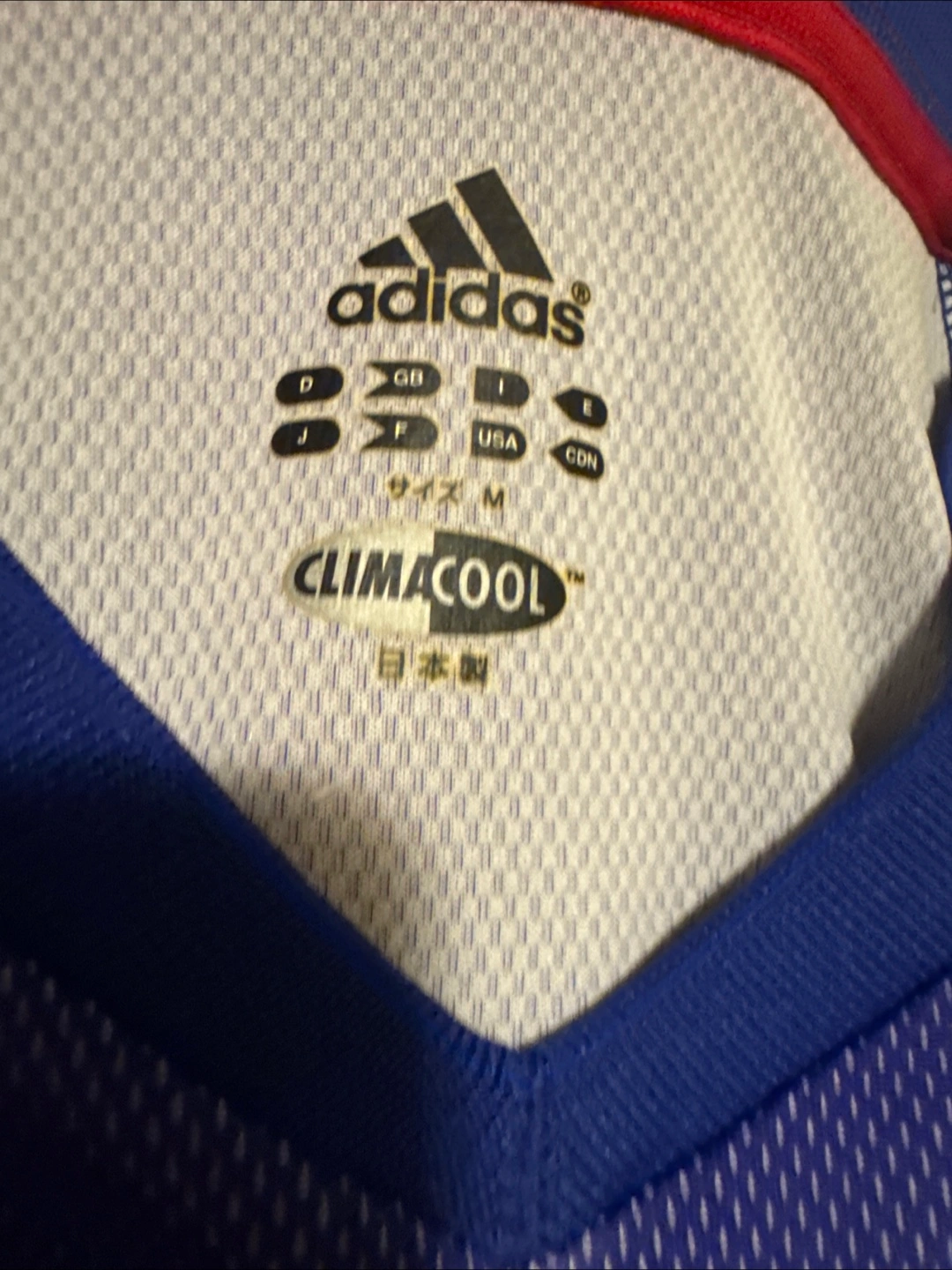 Selling an Adidas Japan soccer jersey long sleeve in size medium! It's a vibrant blue with the classic Adidas stripes. Features the Japan national team crest and ClimaCool technology. Made in Japan, bought from Japan.