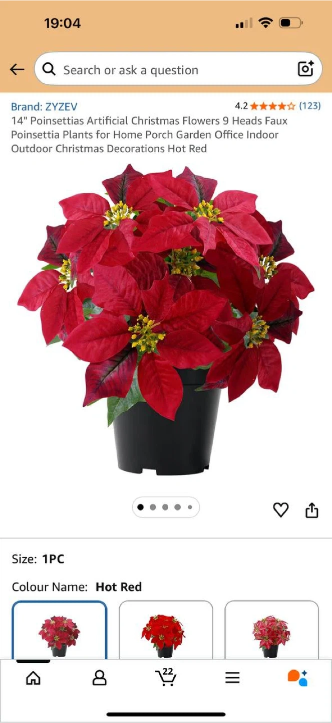 ZYZEV 14β Artificial Poinsettia Plant β Hot Red β NEW ππΊ