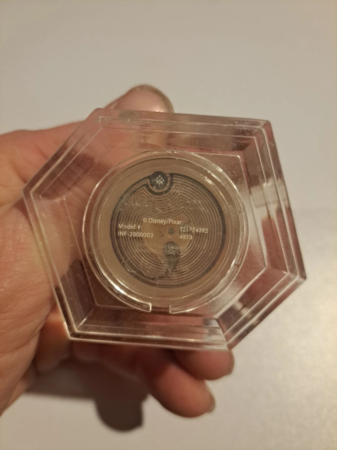This is a Disney Infinity base. It's used for playing Disney Infinity video games. The base has a hexagonal shape and connects to the game console.