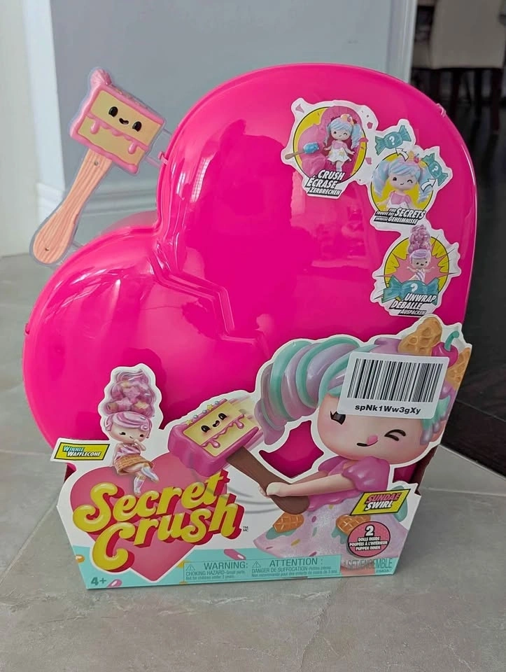 Pickup in Nobleton. Crush the candy heart to discover one of two sweetheart dolls. Reveal the candy themed, fully articulated, large doll with removeable fashion. Discover 4 candy themed surprises hidden in her hair, bow, dress, and in her heart packaging.