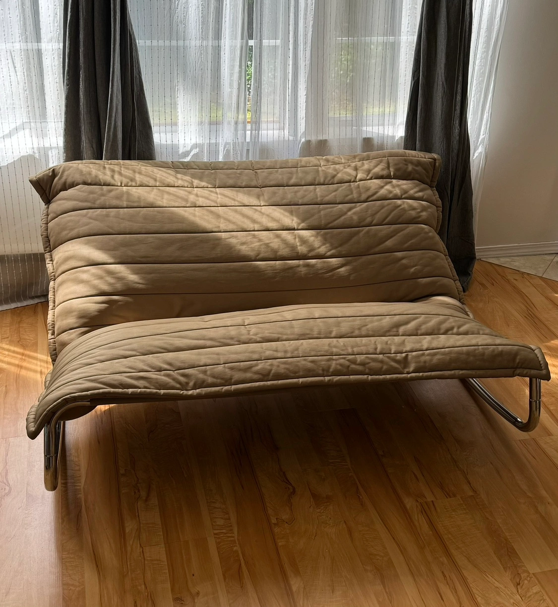 Vintage Danish rocking chair, bean bag chair on chrome frame. Filled with regular bean bag chair foam beads.