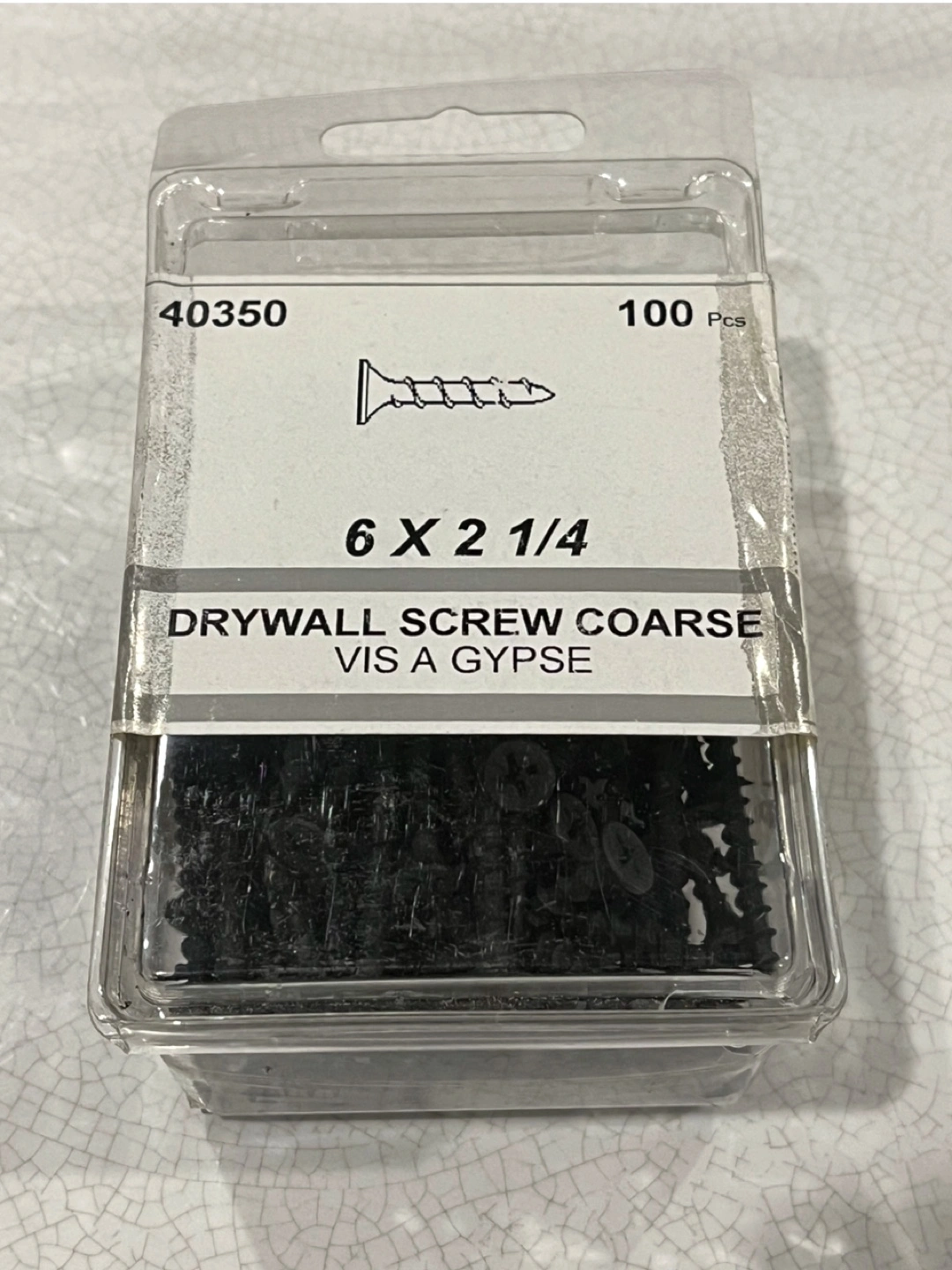 Buy & Sell100 Pack 6 x 2 1/4" Drywall Screws100 Pack 6 x 2 1/4" Drywall Screws$1.25100 black drywall screws. Coarse thread. 6 x 2 1/4" size. New in package. Multiple packages available. ***Discount on bulk buy***ConditionNewDimensions#6 X 2-1/4 inchWHERE TO MEETNDSS AreaView MapSELLERverifiedGeraldHarewood1967 reviews0 chats·0 favorites·12 viewsSEND CHAT TO SELLERHi Gerald! I’m interested in your listing.Hi Gerald! I’m interested in your listing.Get the Karrot app to chatSign In to chat