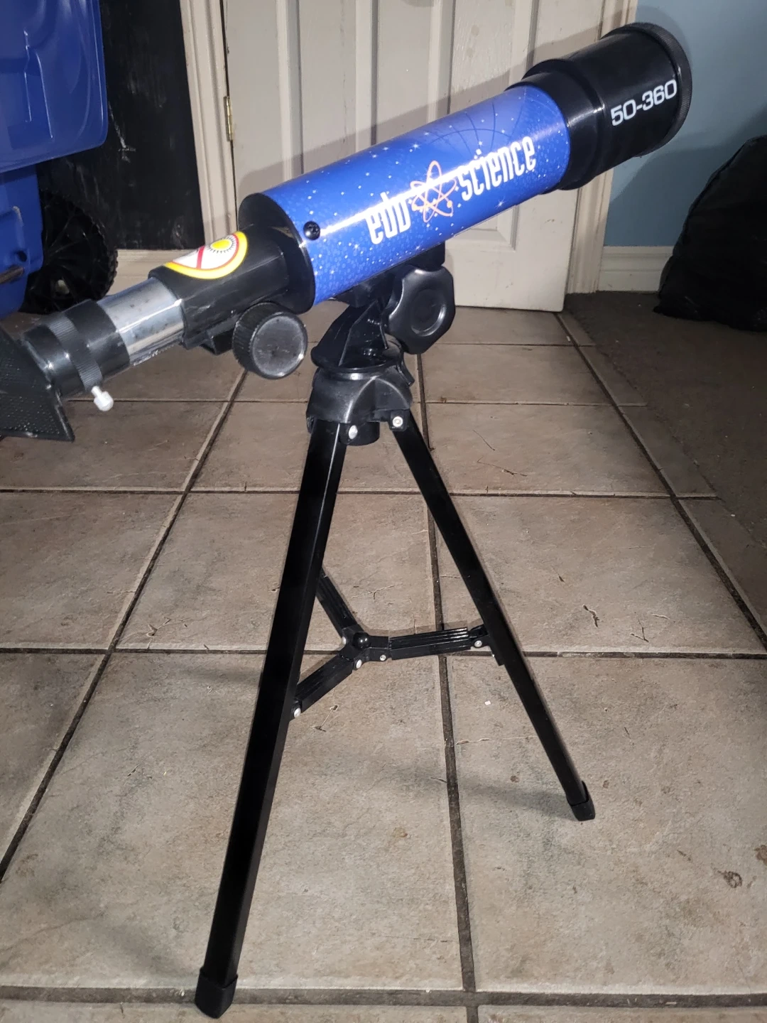 This Edu-Science telescope comes with a tripod for stable viewing. It's designed for educational use and includes a 50mm aperture and 360mm focal length. Great for budding astronomers eager to explore the night sky!