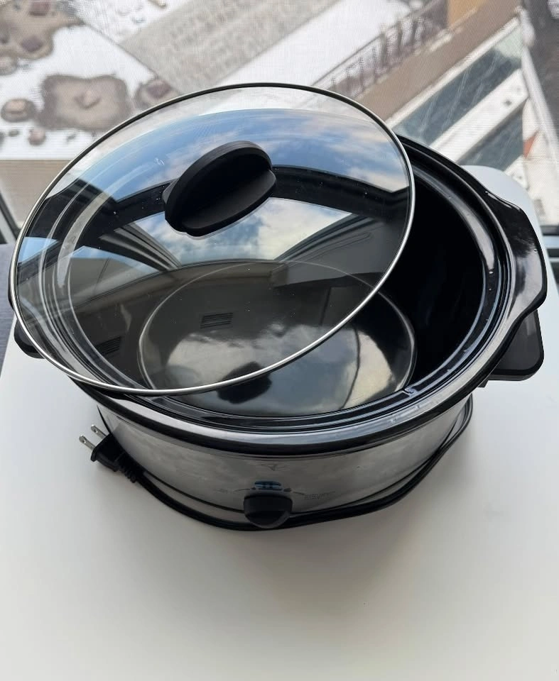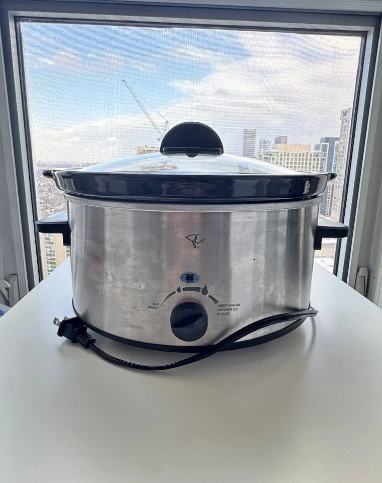 Large PC slow cooker in excellent working condition. Perfect for soups, stews, meal prep, and batch cooking. Large capacity, glass lid included, keep warm function. Clean and well maintained. Works perfectly.