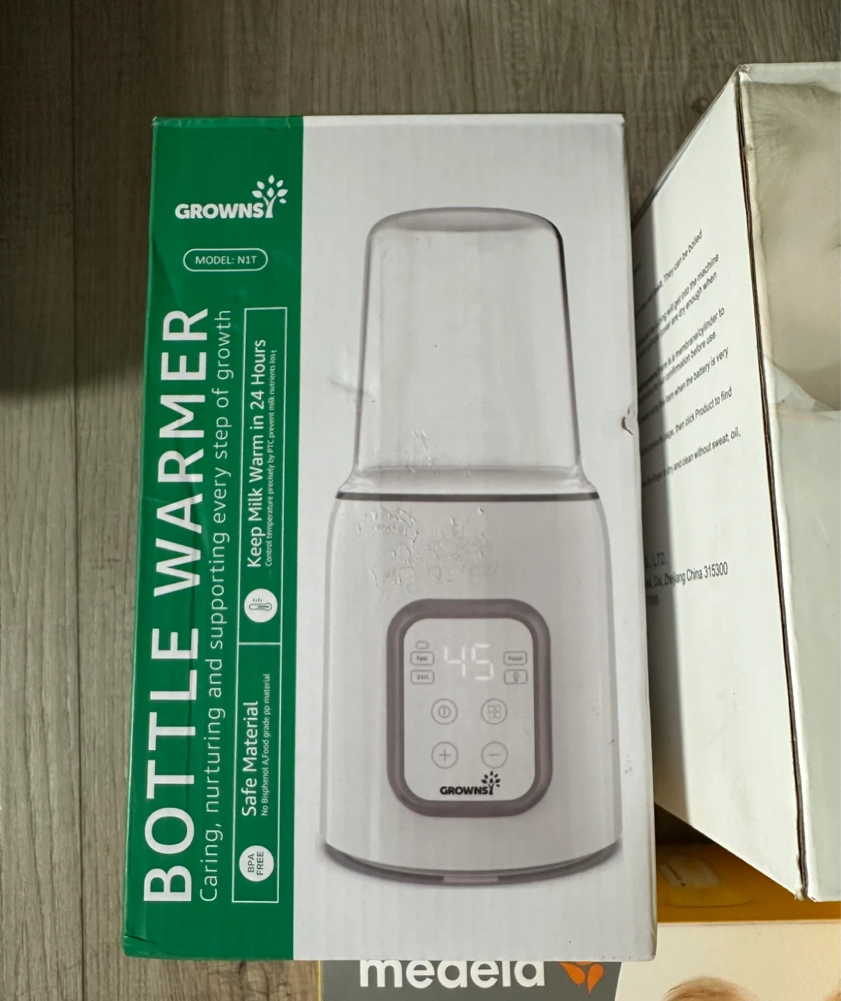 This is the Growns N1T bottle warmer. It's designed to keep milk warm for 24 hours, preventing nutrient loss. Made from BPA-free, food-grade PP material.