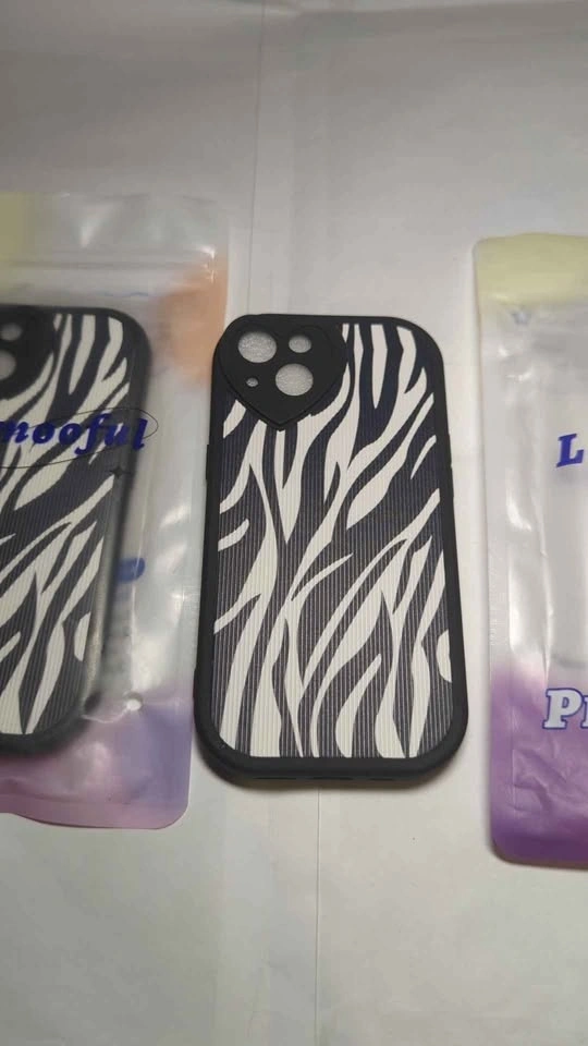Cute wavy stripe zebra pattern with a black love heart lens bumper protector. Soft TPU, shockproof, and protective. for iPhone 13. Vertical zebra design.