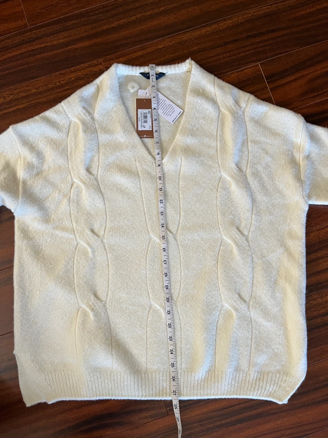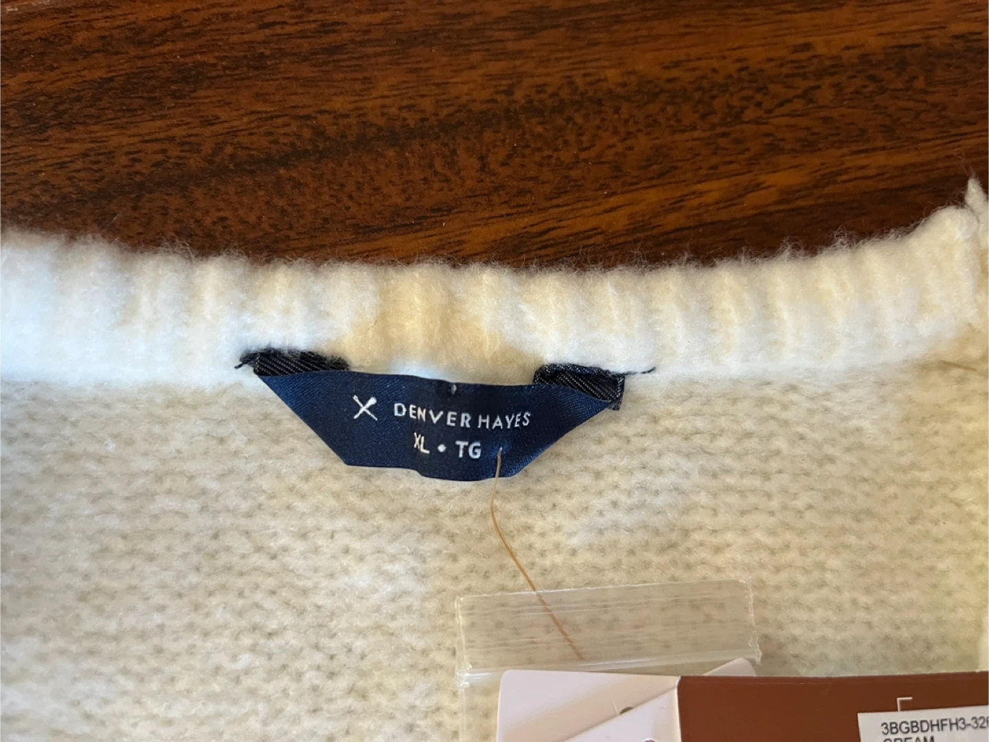 Denver Hayes women’s XL v-neck textured knit sweater, cream