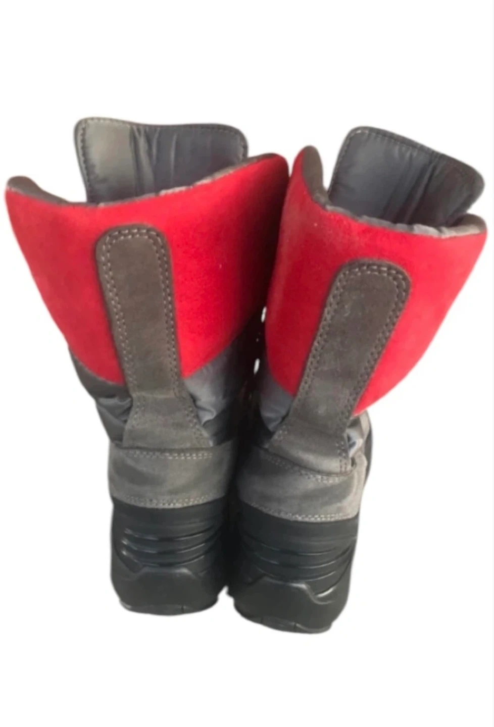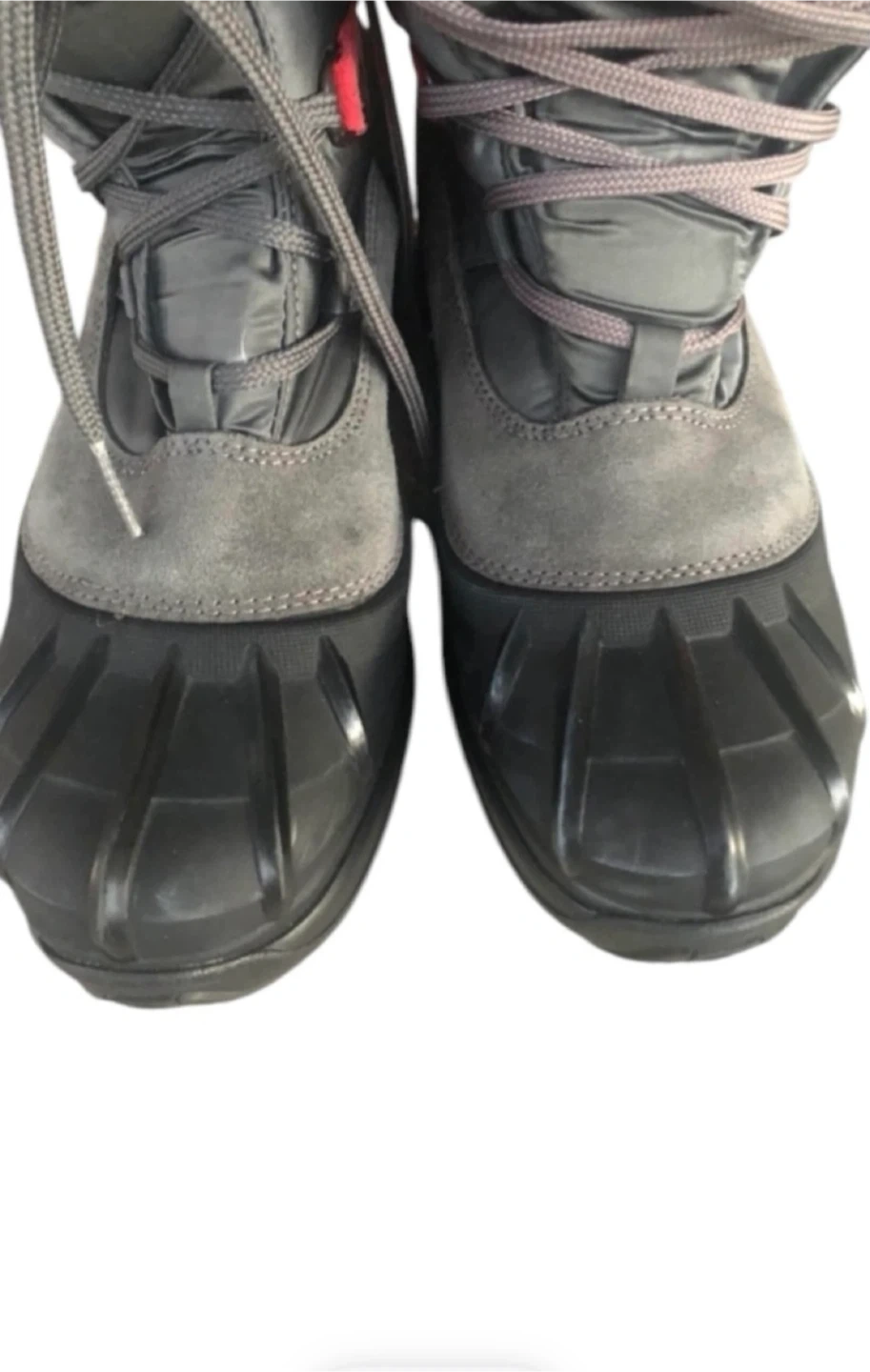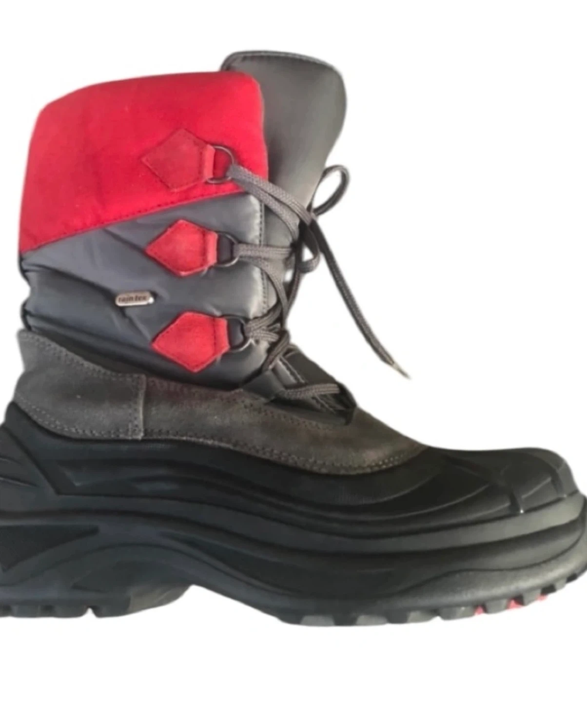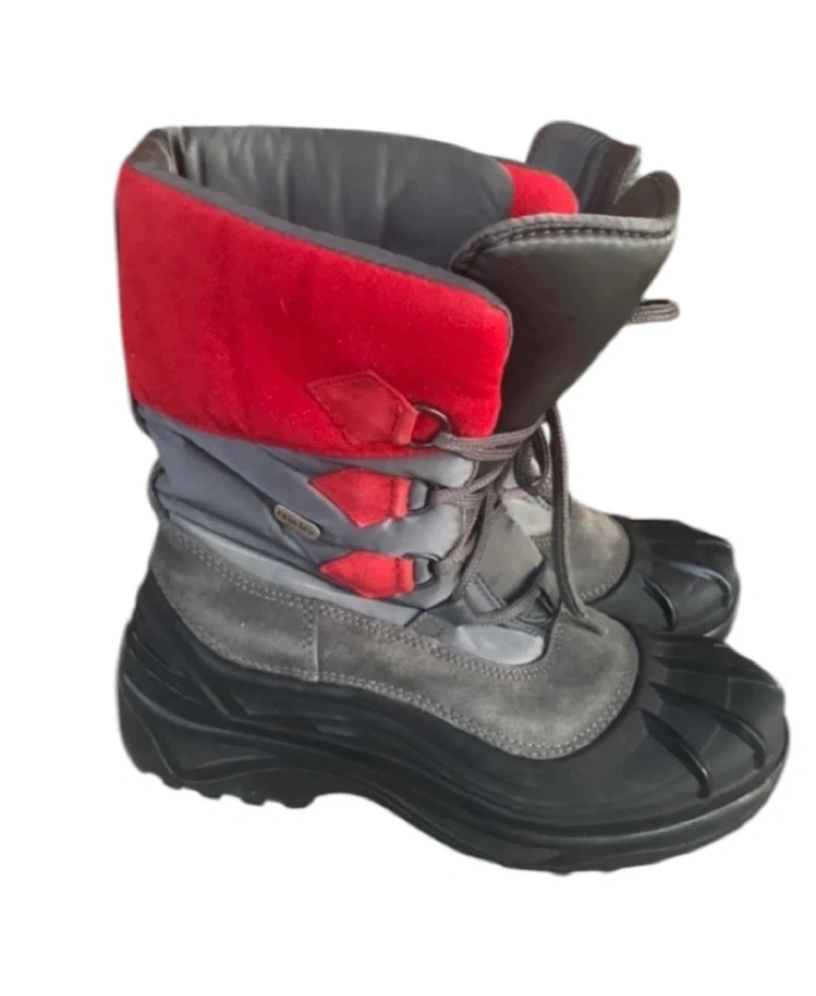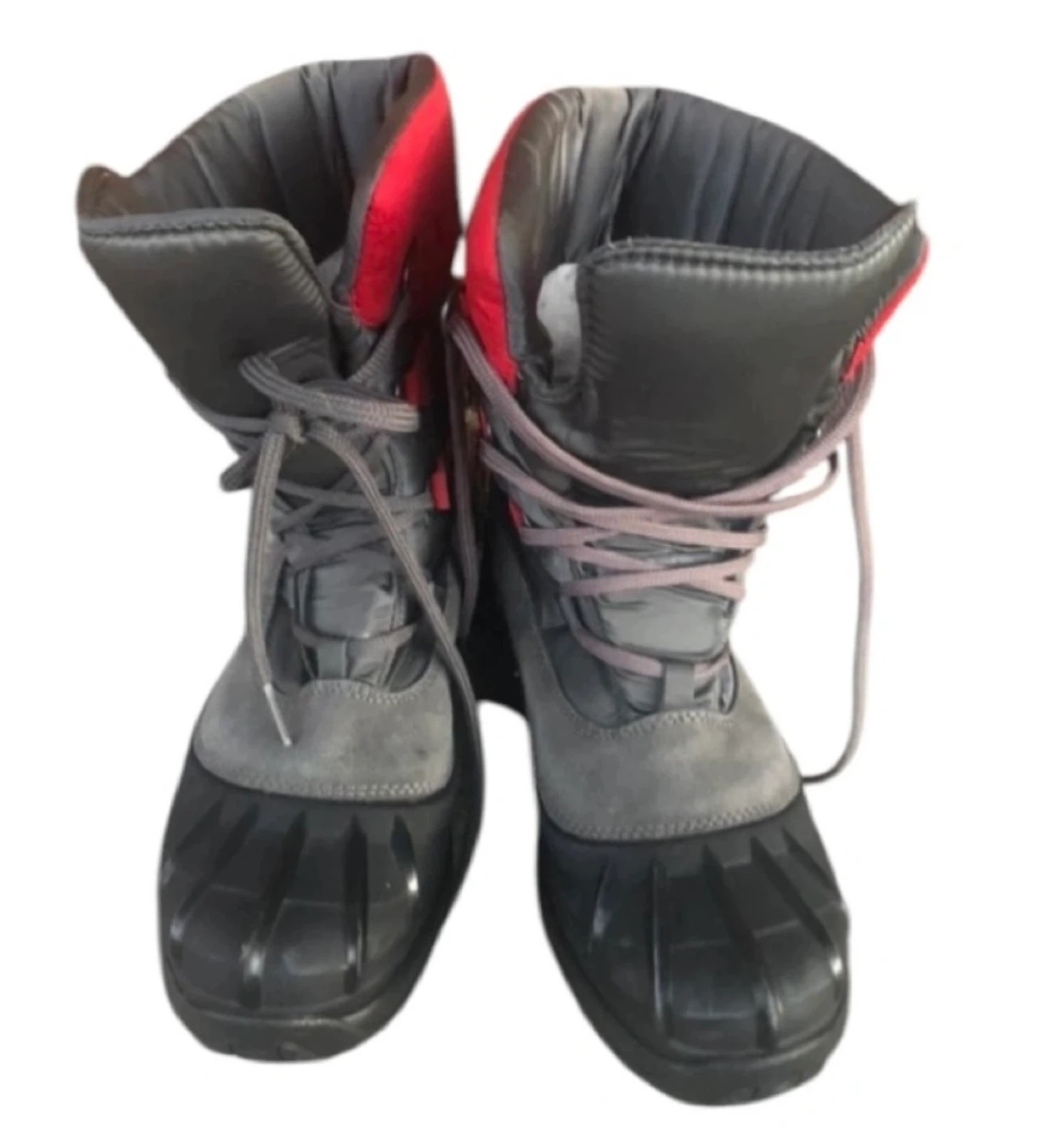 They feature a waterproof rubber sole and lace-up closure for a secure fit. The rugged tread and built-in cleats offer excellent traction on ice and snow.