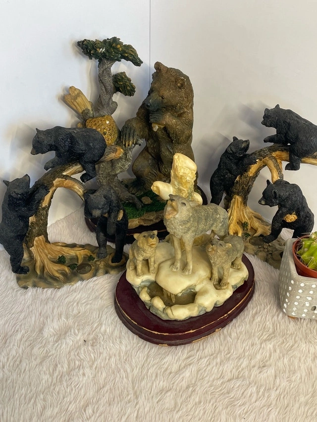 Vintage Canadian Wilderness Resin Statue Collection featuring a Black Bear Cub, Grey Wolf, and Grizzly Bear. Pickup in the Bayview Davisville area. Feel free to message if you have any questions!