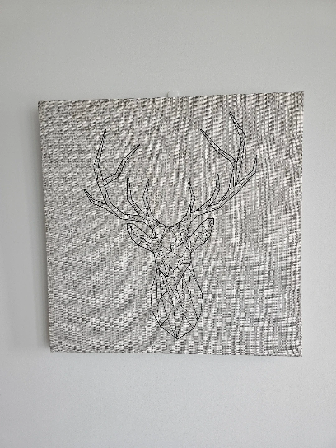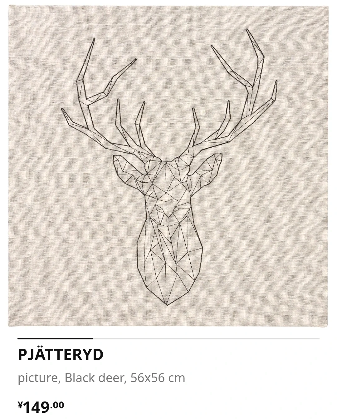 This IKEA PJÄTTERYD picture features a black deer design on a textured canvas. It's a 56x56 cm wall art piece.