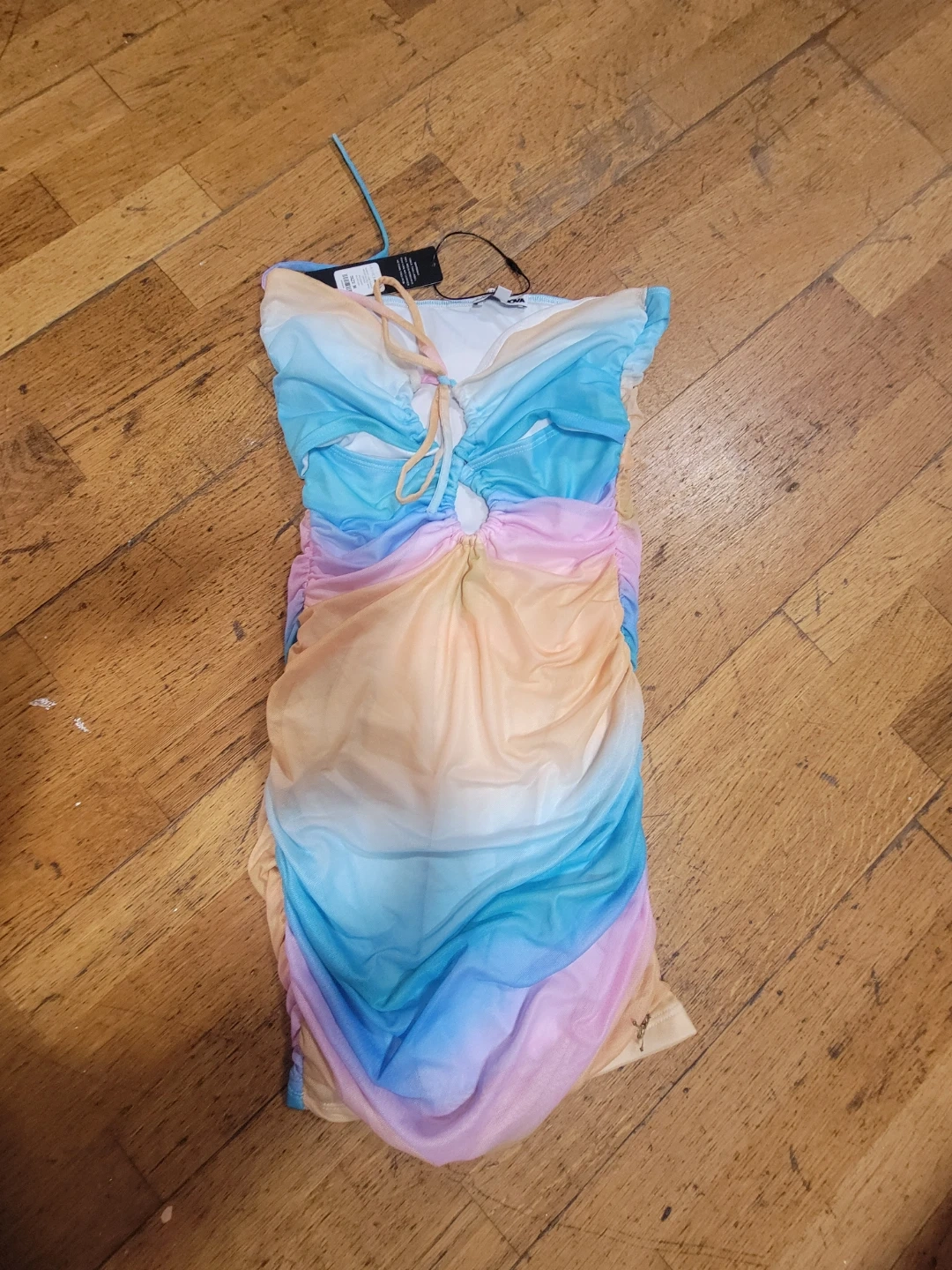 Selling a Fashion Nova 'Sweet Like Candy' mesh micro mini dress in size M. It's a multicolour dress, perfect for summer!