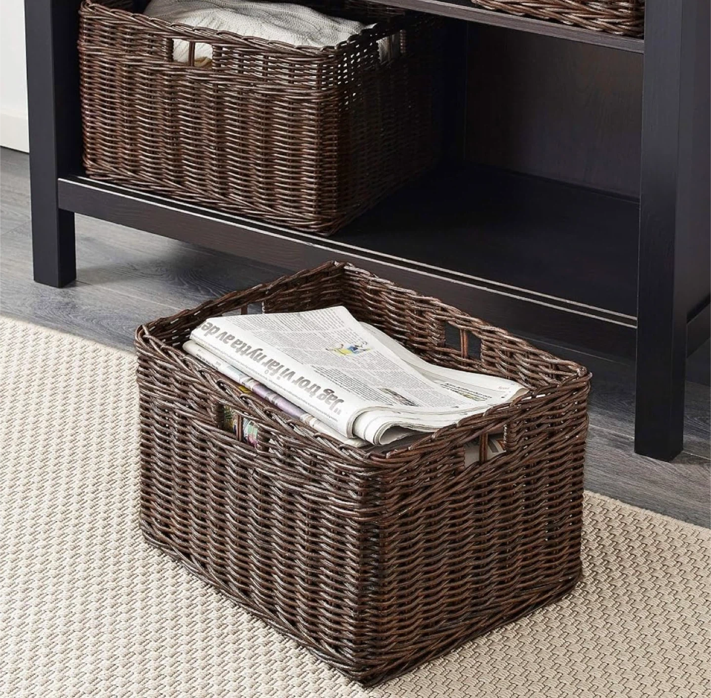✨ The woven material gives it a natural look. It's handy for storage!