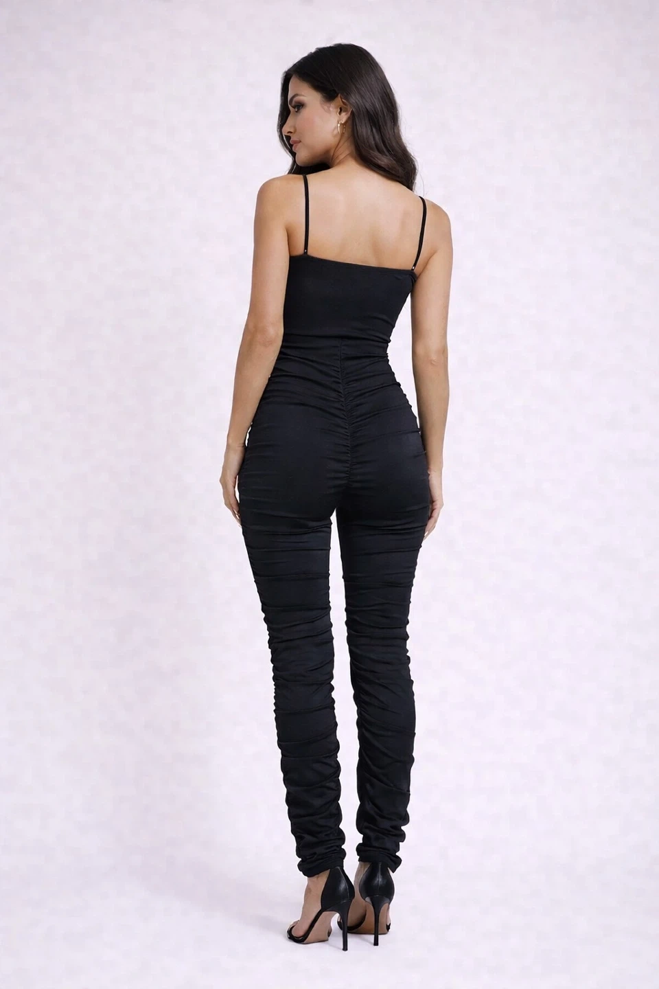 4 jumpsuits for sale. 3 black jumpsuits and 1 grey jumpsuit. All are form-fitting with a sleek silhouette. They're made from a stretchy ribbed material for comfort and style. Sizes range from small and medium large. Buy all for $30 or each for $15.