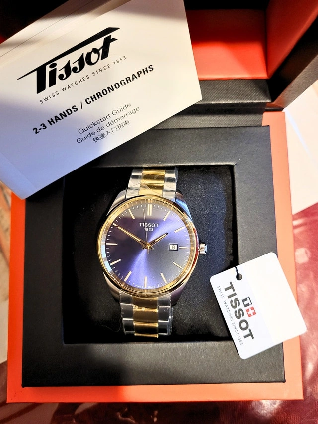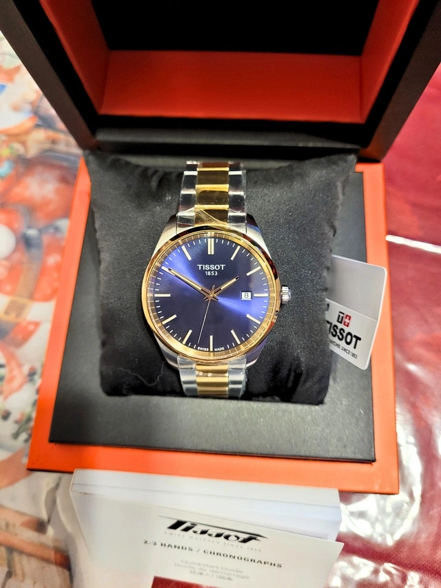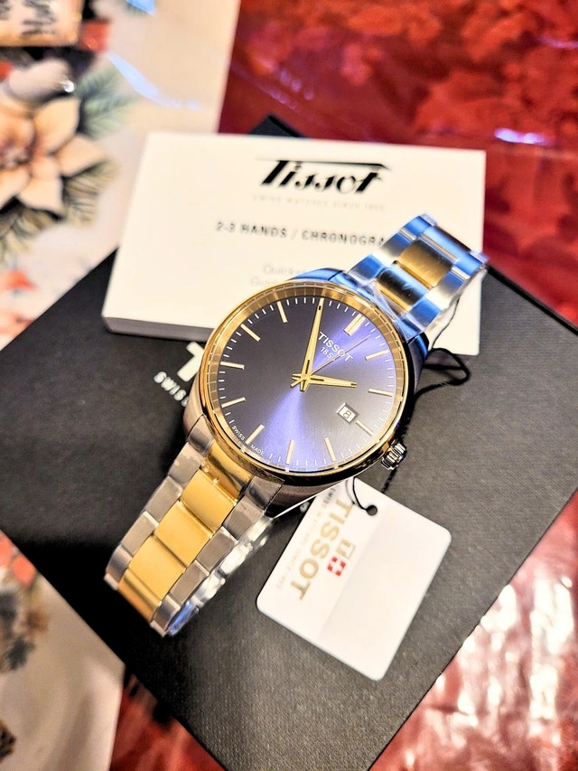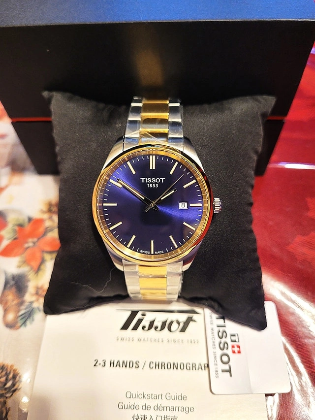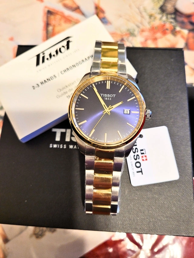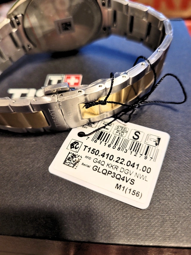 Brand New In The Box With Tags & Booklet. Model: T150.410.22.041.00. Movement: Swiss Quartz. Diameter: 40mm. Dial Color: Blue. Bracelet Color: Silver/Gold. Case: 316L stainless steel with yellow gold PVD coating. Bracelet: Stainless steel. Scratch-resistant sapphire crystal. Interchangeable quick release bracelet. Water Resistant 100 M. Pick Up Area: Sheppard & Don Mills. Cash accepted.