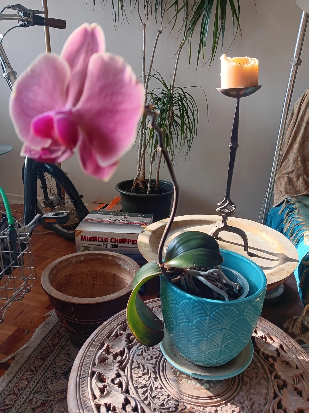 Pink Orchid Plant in Blue Pot
