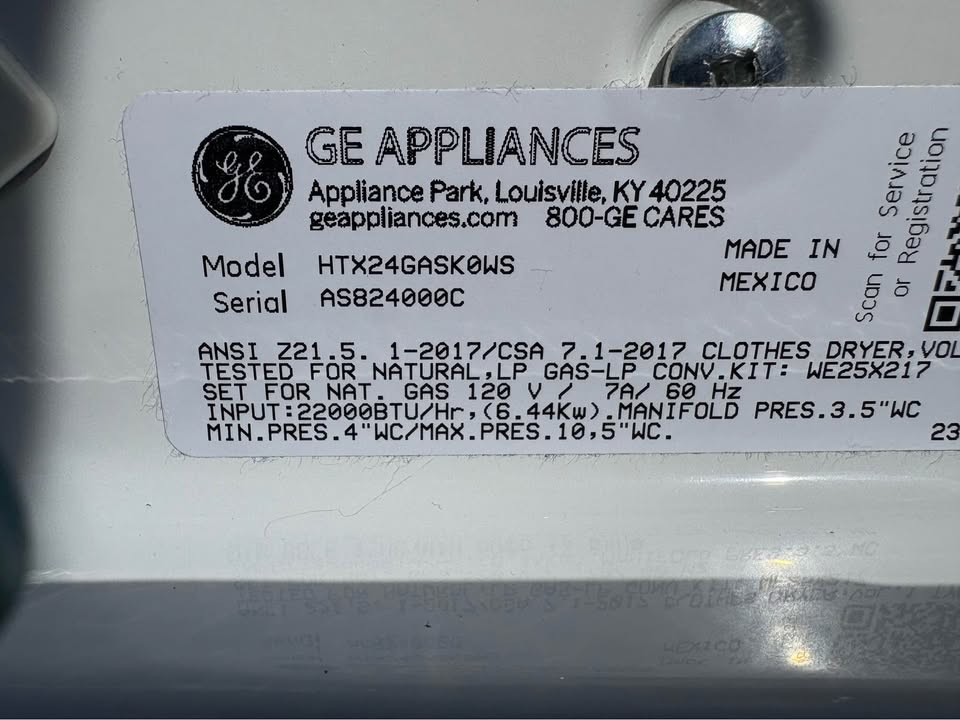 Like New GE Top Load Washer and Gas Dryer Set 27"