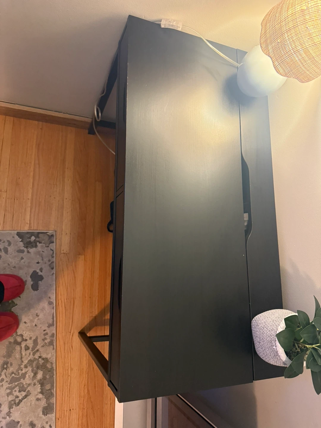 This IKEA ALEX desk is in a black-brown finish. It's 100x48 cm. Perfect for a home office or study space!