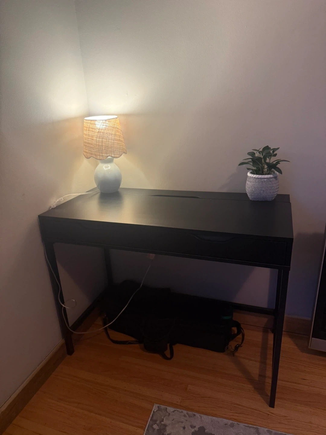 This IKEA ALEX desk is in a black-brown finish. It's 100x48 cm. Perfect for a home office or study space!