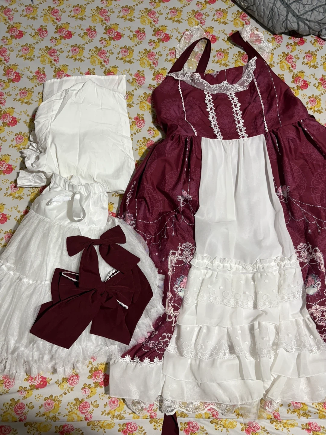 Brought from Aliexpress originally, worn only once to cosplay convention. Has cute antique flower/wonderland like feel. (Total cost: $98 approximately)