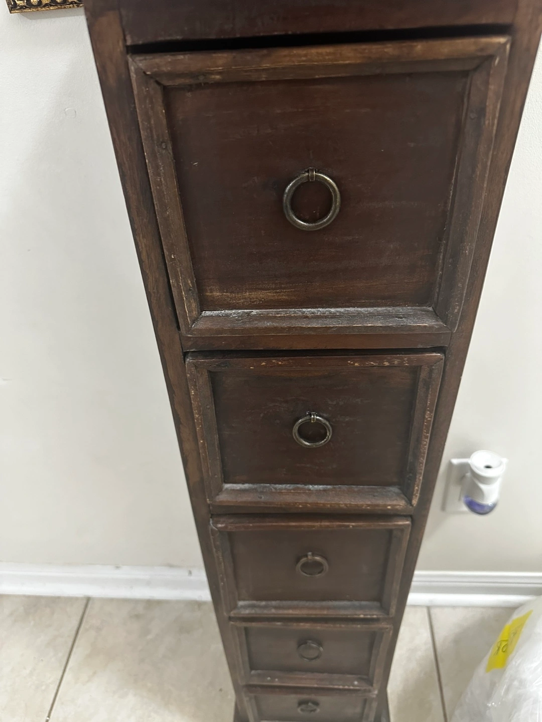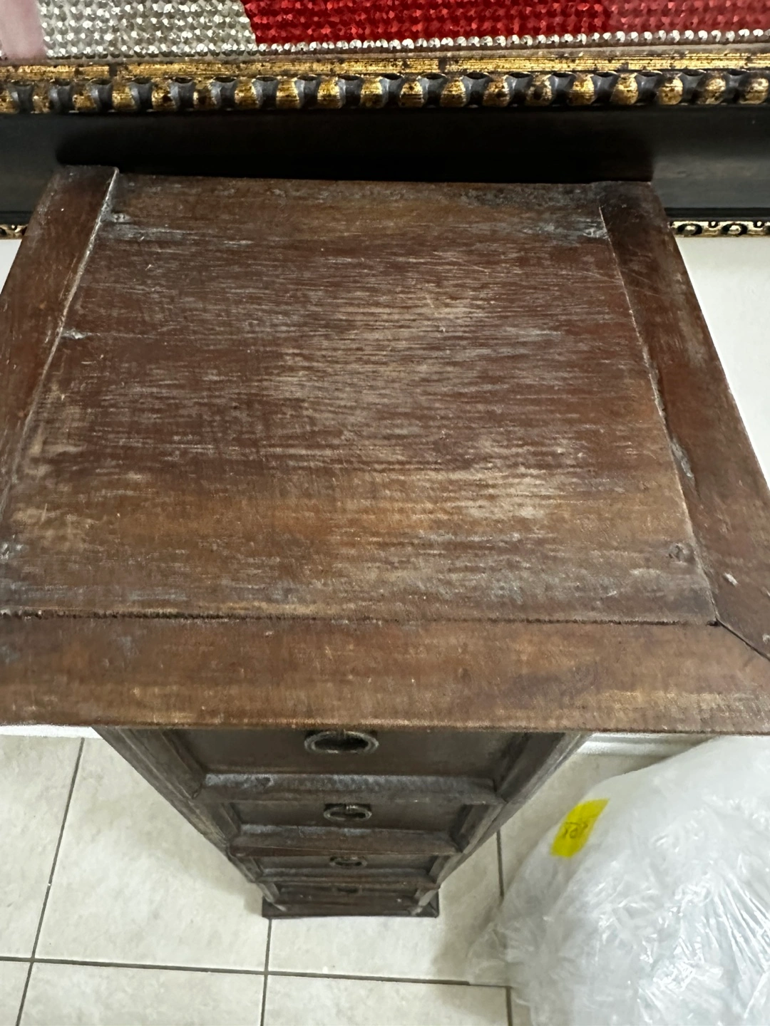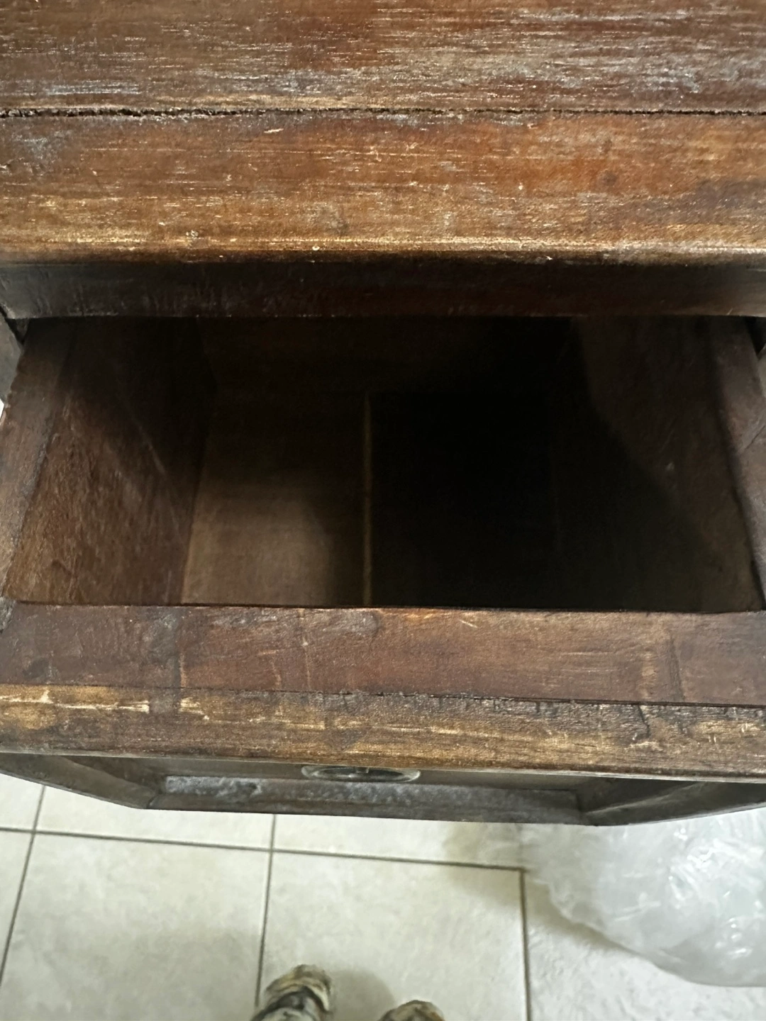 The drawers offer handy storage, and the slim design fits well in tight spaces. It's in decent condition but would suggest refinishing (see last pic).