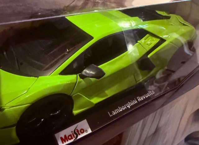 Selling a Maisto 1:18 scale special edition Lamborghini Revuelto model car, brand new in original packaging. This vibrant green sports car replica is a must-have for collectors and enthusiasts alike, showcasing intricate details and a sleek design. The model is in pristine condition, never been opened, and ready to be displayed. Cash accepted, Cashless payment accepted.