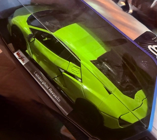Selling a Maisto 1:18 scale special edition Lamborghini Revuelto model car, brand new in original packaging. This vibrant green sports car replica is a must-have for collectors and enthusiasts alike, showcasing intricate details and a sleek design. The model is in pristine condition, never been opened, and ready to be displayed. Cash accepted, Cashless payment accepted.