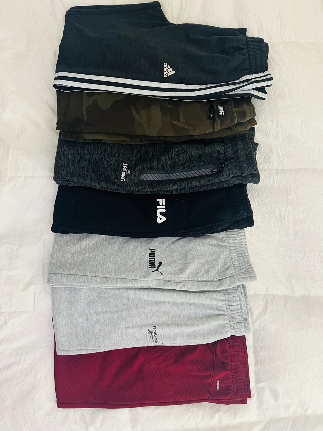 Bundle of seven pairs of kids athletic sweatpants. All sweatpants are in good condition with no rips or stains. Sizes range from 12-14 boys.