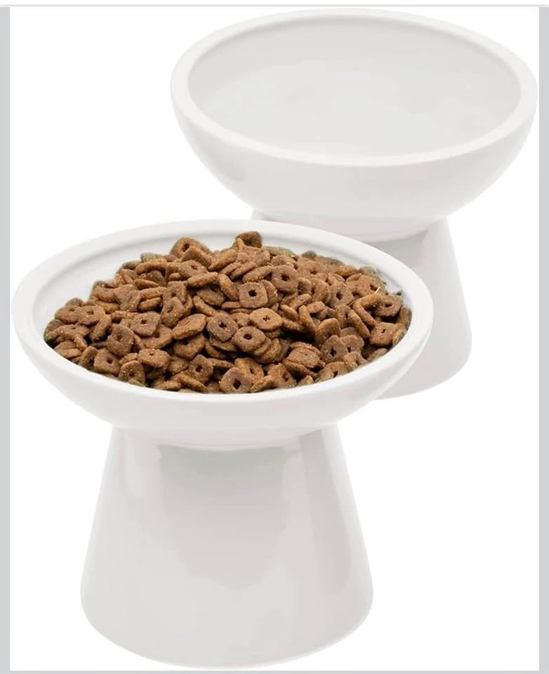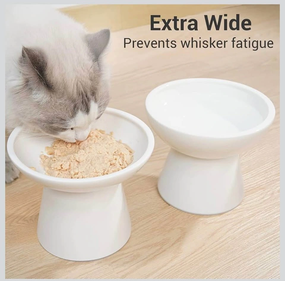 2 Elevated Ceramic Cat Bowls Extra Wide
