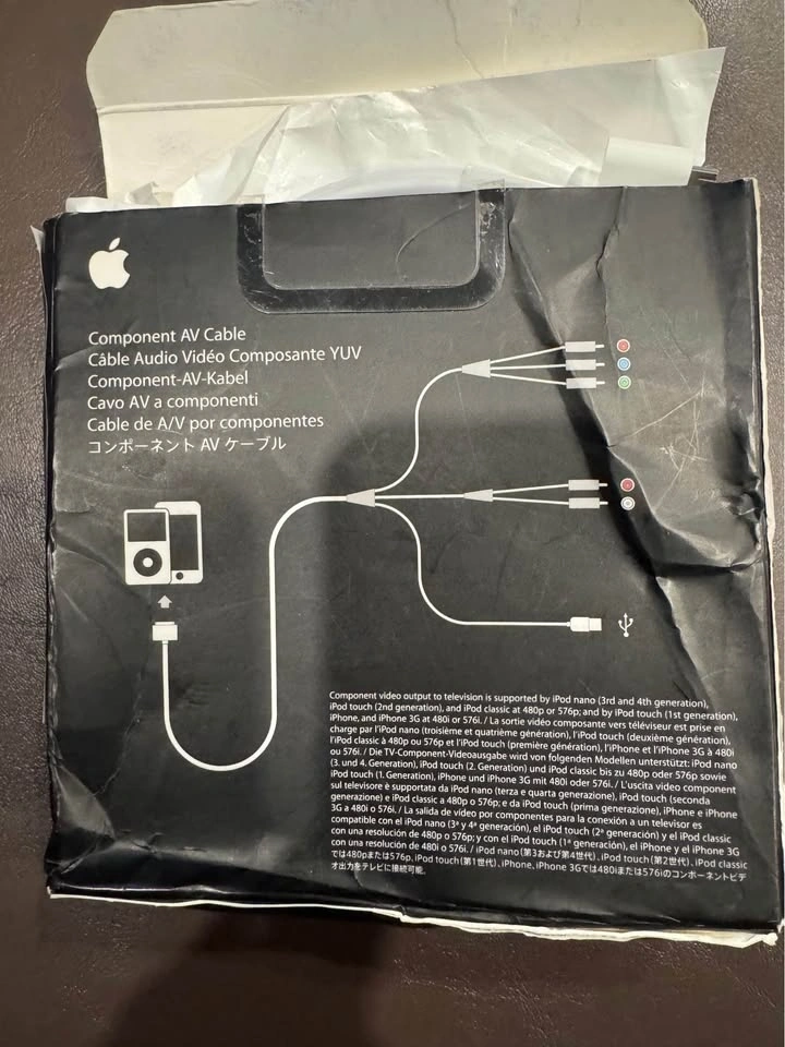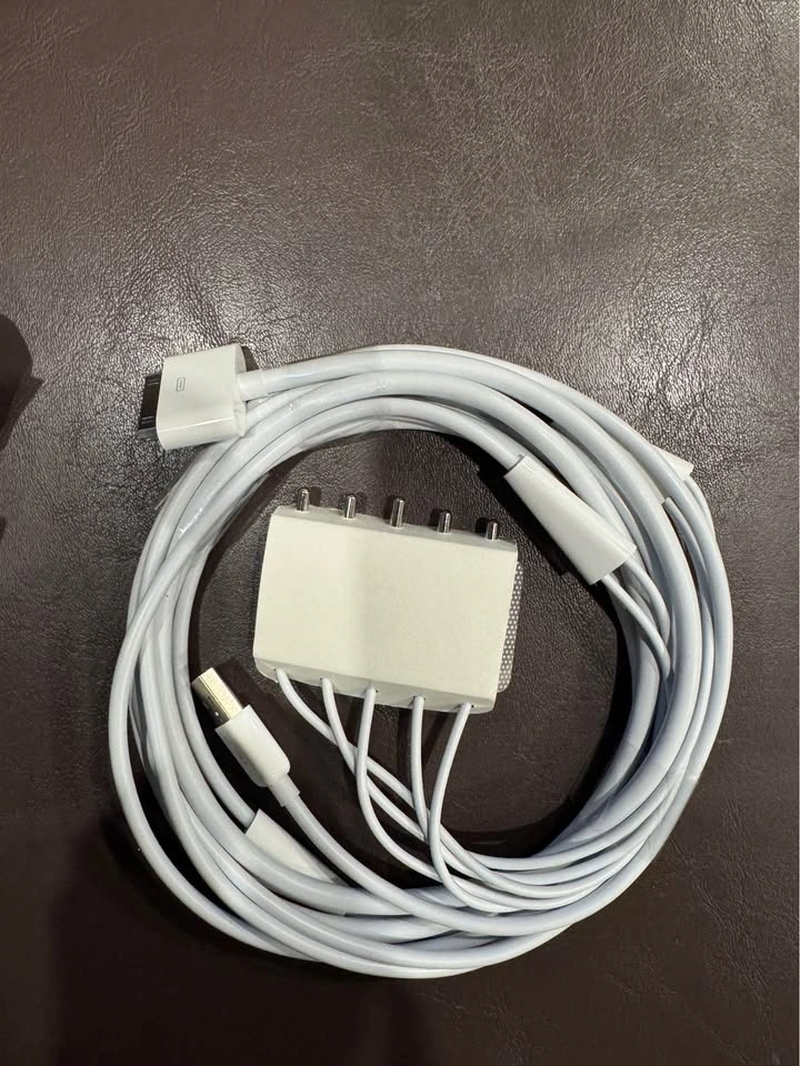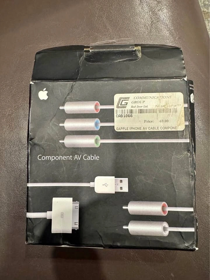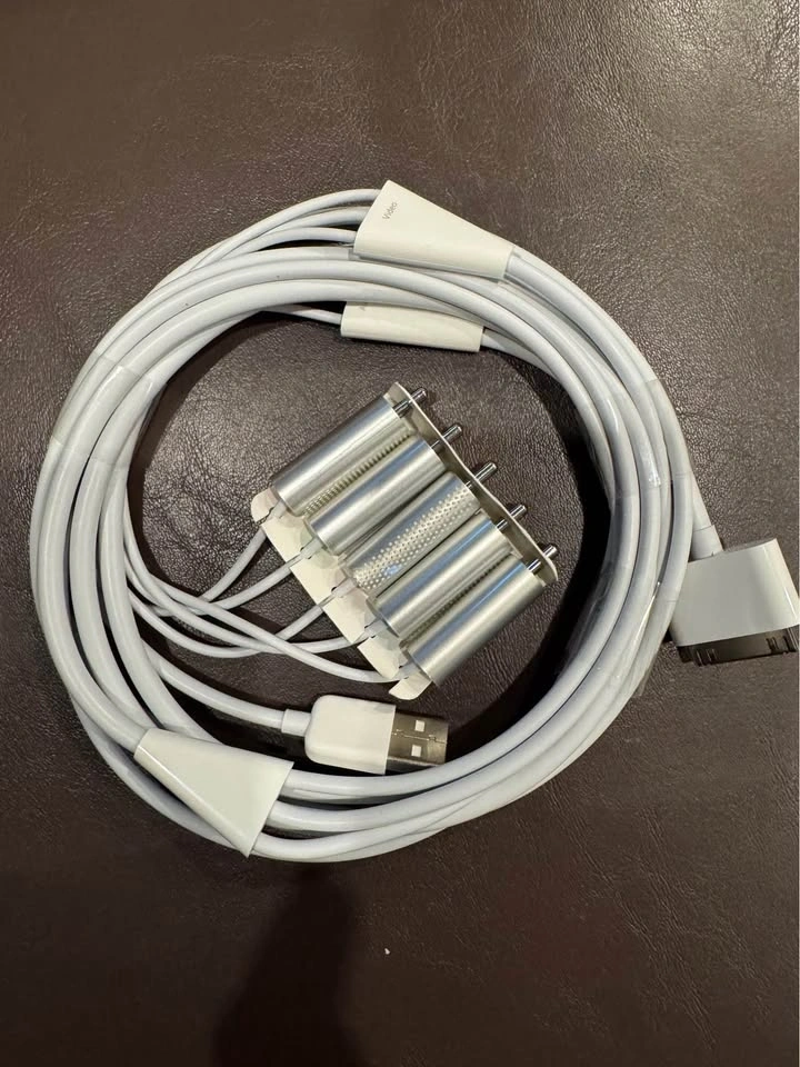 Original Apple Component AV Cable for older iPhone and iPod models with a 30-pin connector. Perfect for connecting your device to a TV using component video (red/green/blue) and audio (red/white) cables. Great for watching videos or presentations on bigger screens. Genuine Apple cable, never used. Includes USB for charging while in use. Clean and fully functional. Compatible with: iPhone (older models with 30-pin, e.g. iPhone 3G/3GS/4), iPod Classic / iPod Touch (older generations), iPad (early models with 30-pin). Not compatible with newer Lightning or USB-C devices. Pick up in Airdrie.