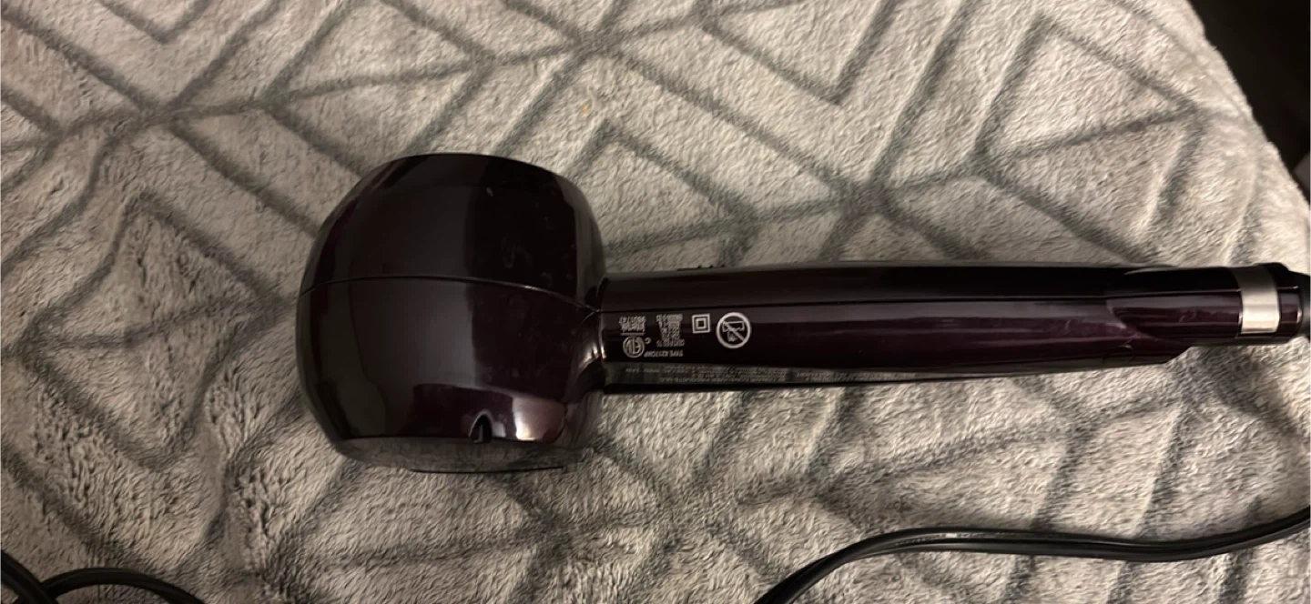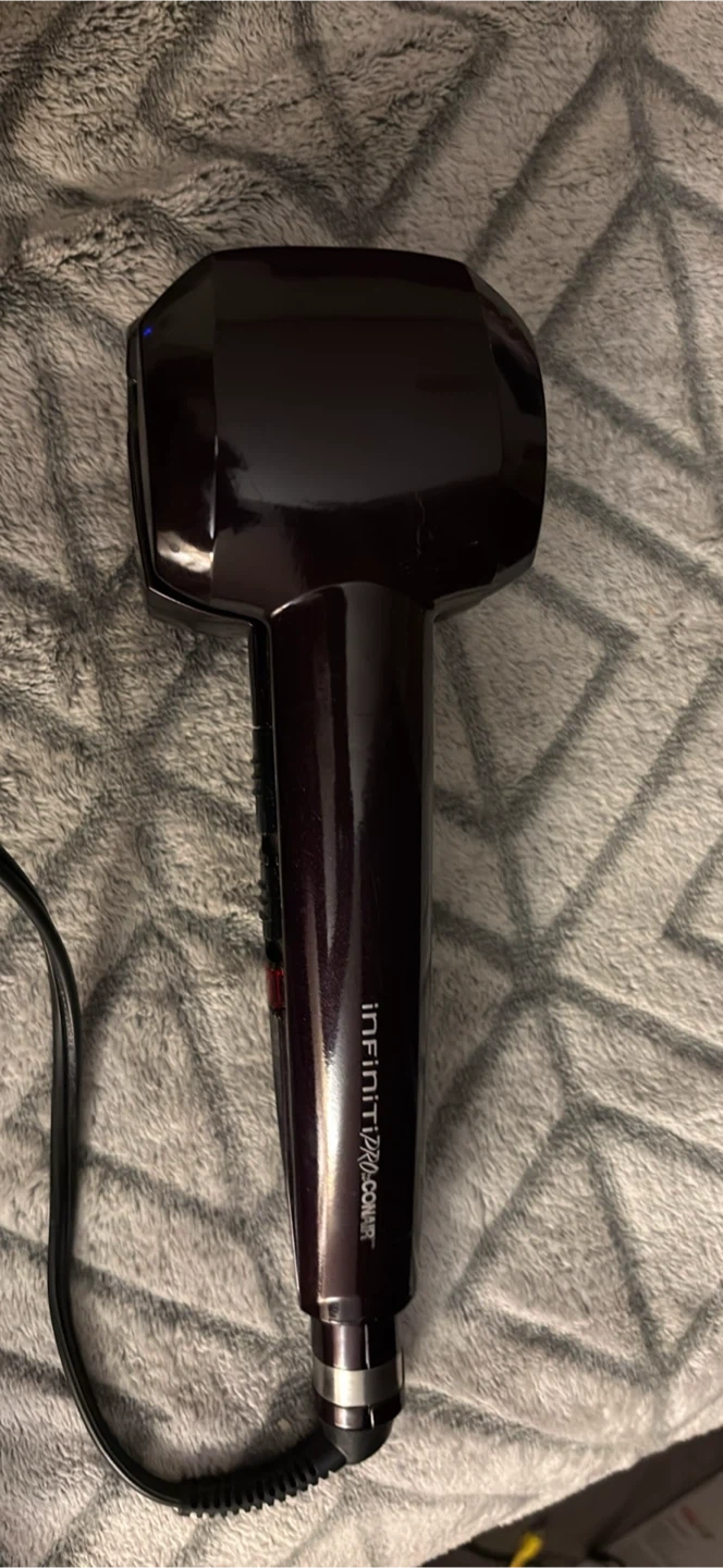 This is the Conair InfinitiPro Curl Secret hair curler. It's a deep purple colour and has a tangle-free swivel cord. It's a curling iron for creating beautiful curls.