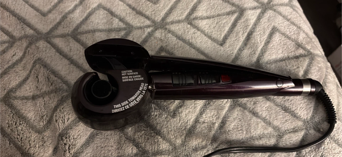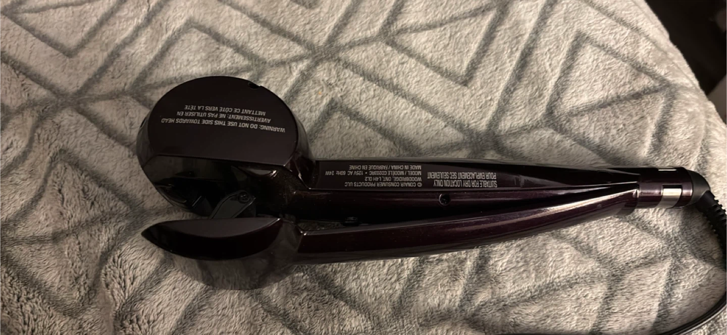 This is the Conair InfinitiPro Curl Secret hair curler. It's a deep purple colour and has a tangle-free swivel cord. It's a curling iron for creating beautiful curls.