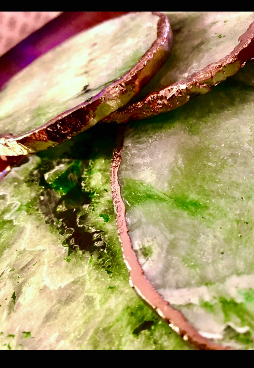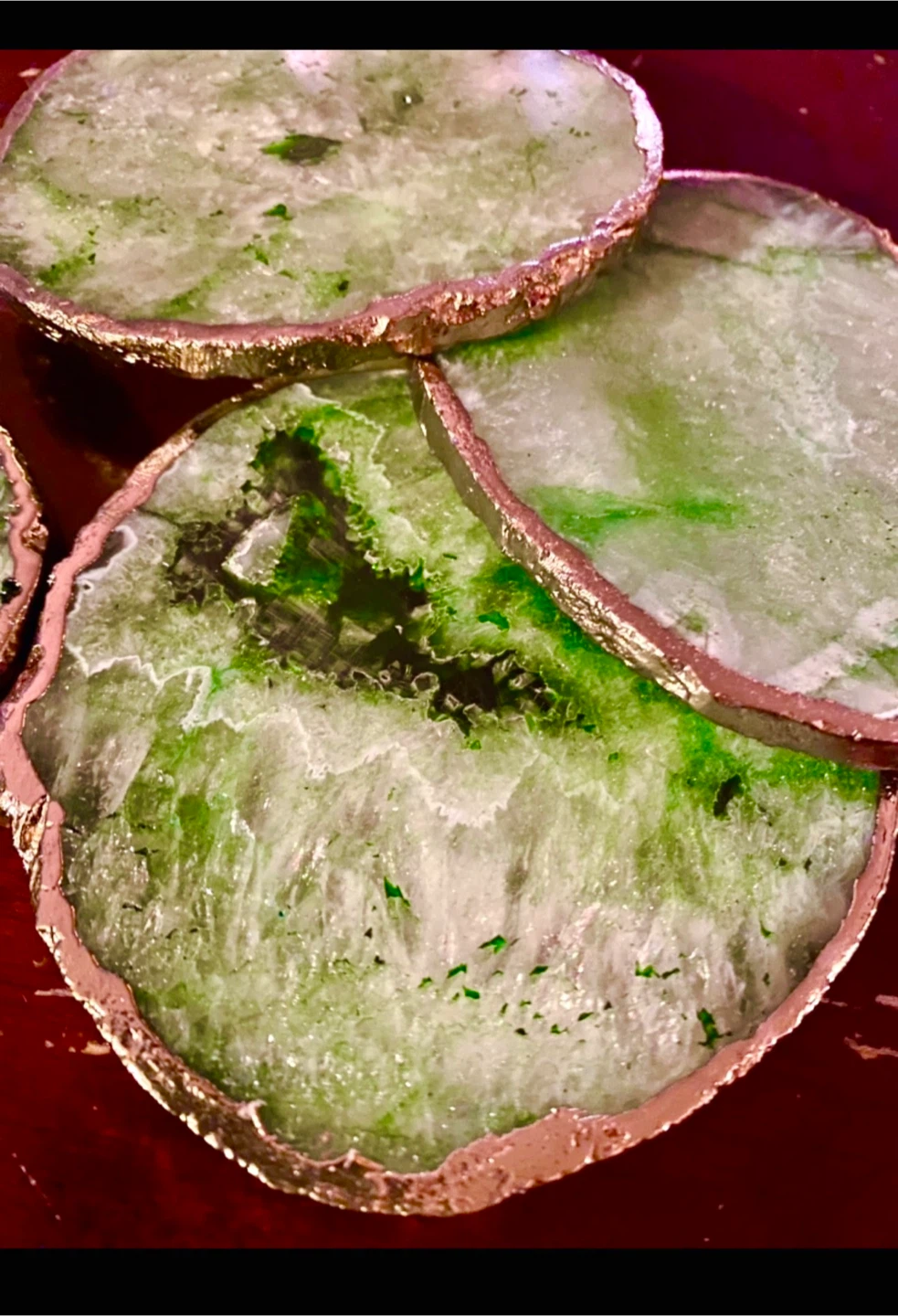 NWT Genuine Green Agate Gold-trimmed Crystal Coasters (4)