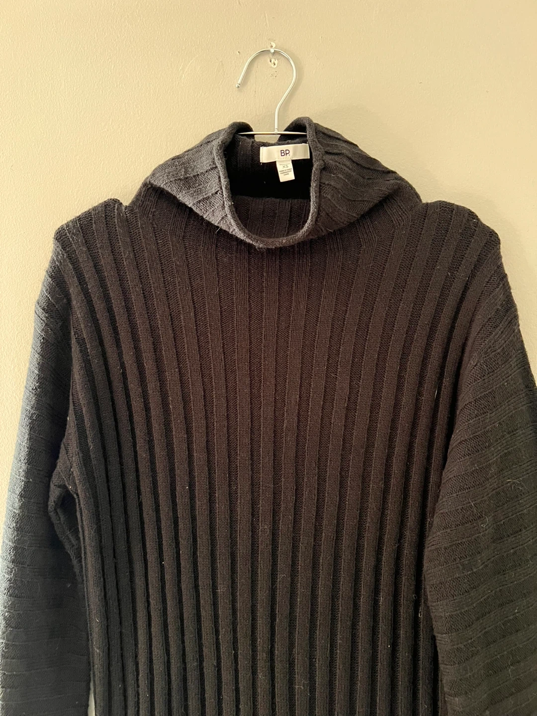 Selling a BP. black knit turtleneck dress in size XS. This dress is in great condition and perfect for cooler weather! It features a ribbed knit design and a cozy turtleneck.