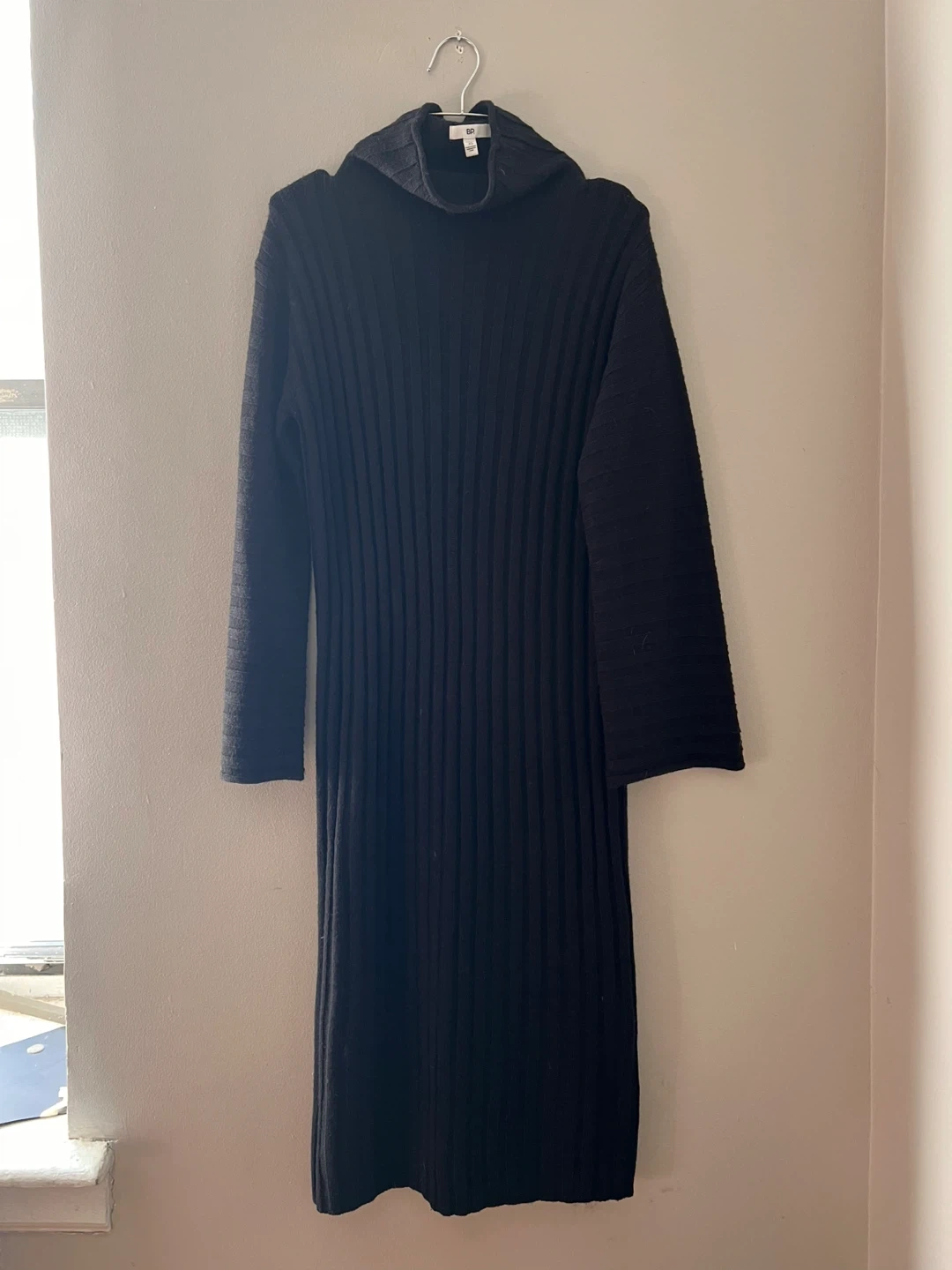 Selling a BP. black knit turtleneck dress in size XS. This dress is in great condition and perfect for cooler weather! It features a ribbed knit design and a cozy turtleneck.