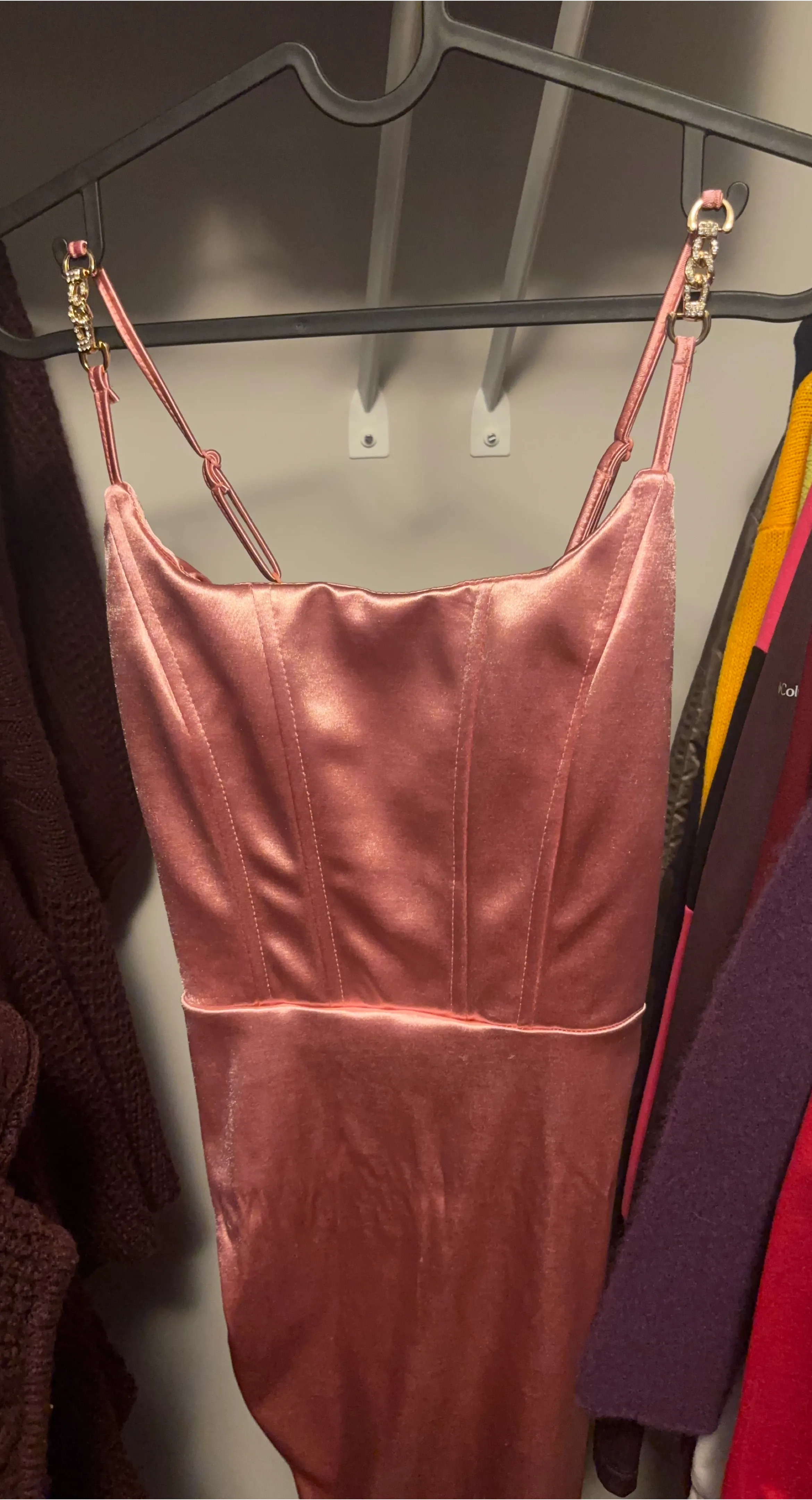 Pink Satin Corset Dress with Embellished Straps