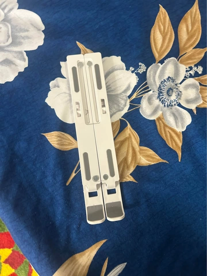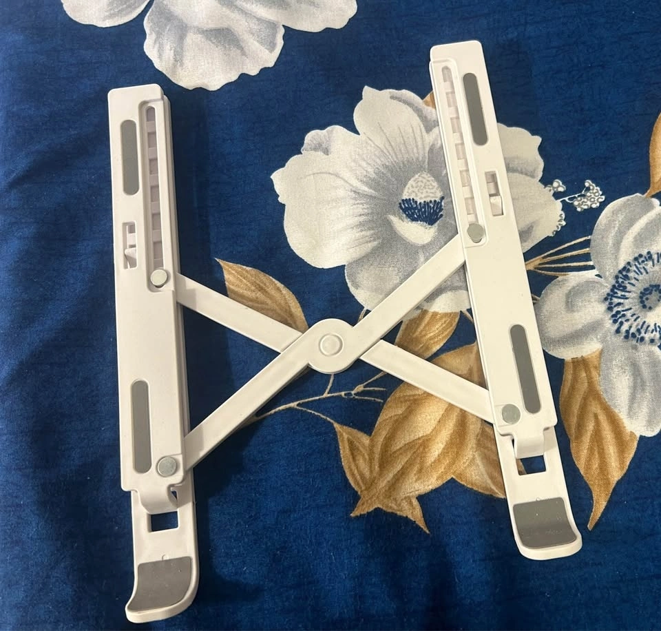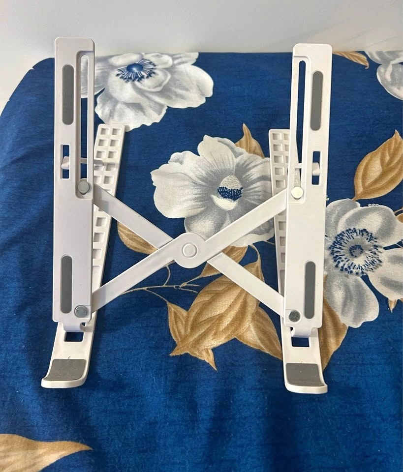A foldable, portable plastic laptop stand is a lightweight, adjustable accessory made from durable ABS plastic, featuring a dual-triangular design for stability, heat ventilation, and ergonomic height adjustment (e.g., 2.68 to 4.72 inches) to improve posture and cooling, collapsing into a compact, travel-friendly unit with non-slip pads for use anywhere, from desks to couches. Let me know if you're interested!