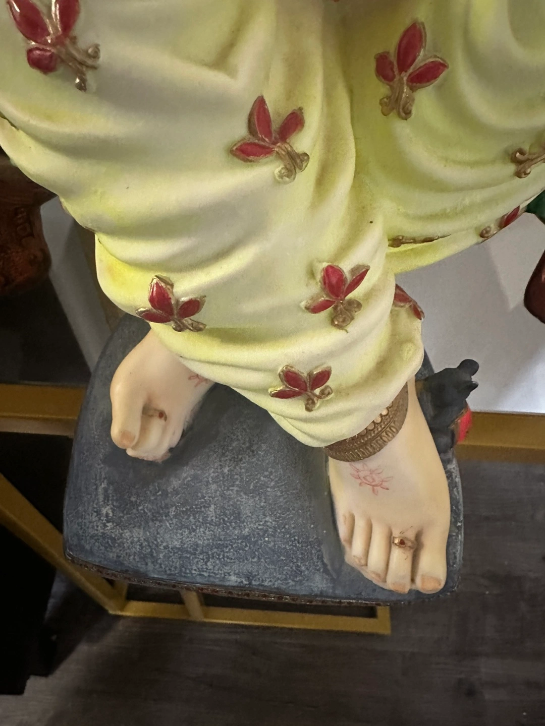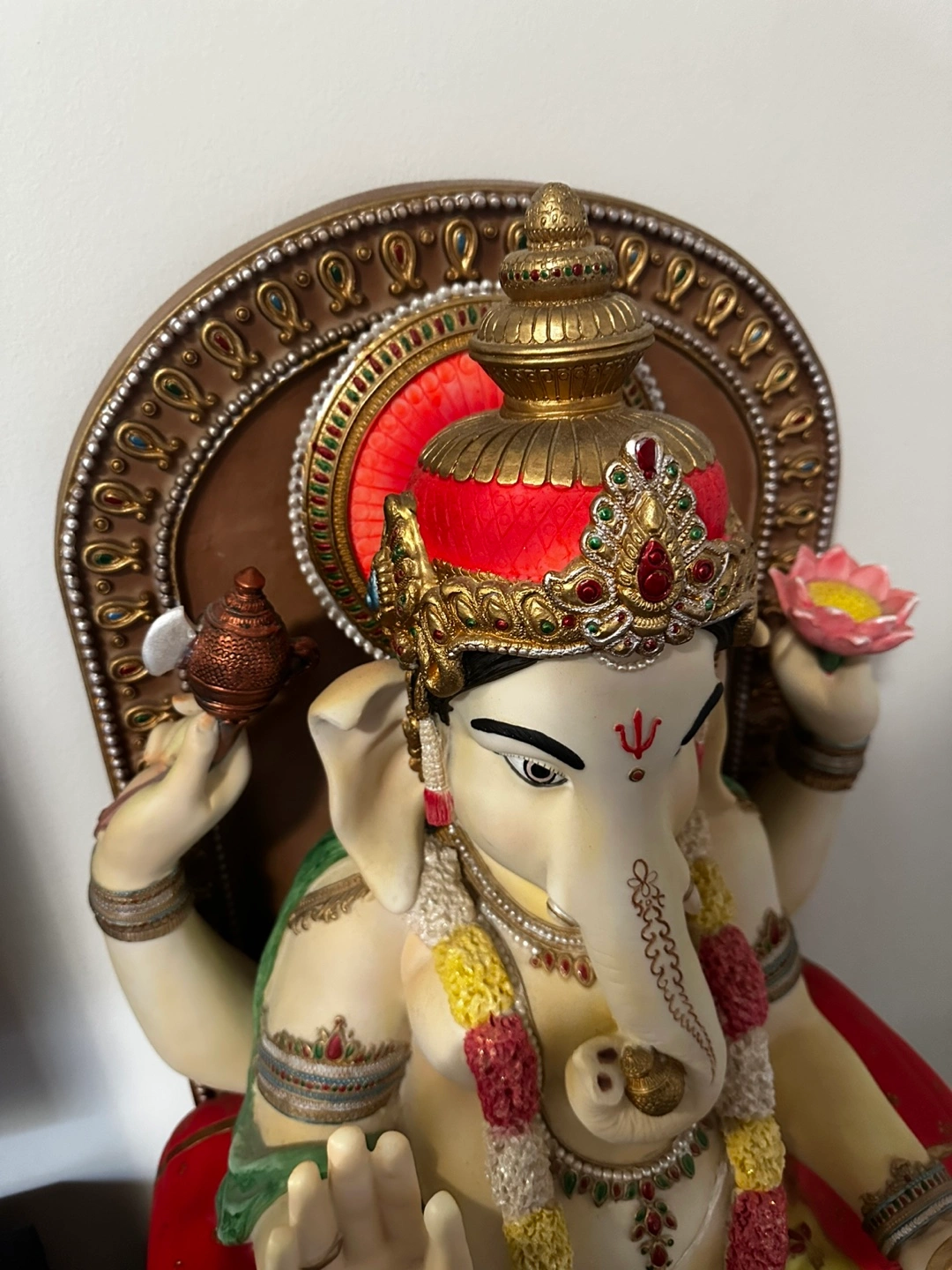 A beautiful Ganesh statue for your home or Mandir altar. It's in great condition and features intricate details and vibrant colours. A wonderful piece to add to your collection!