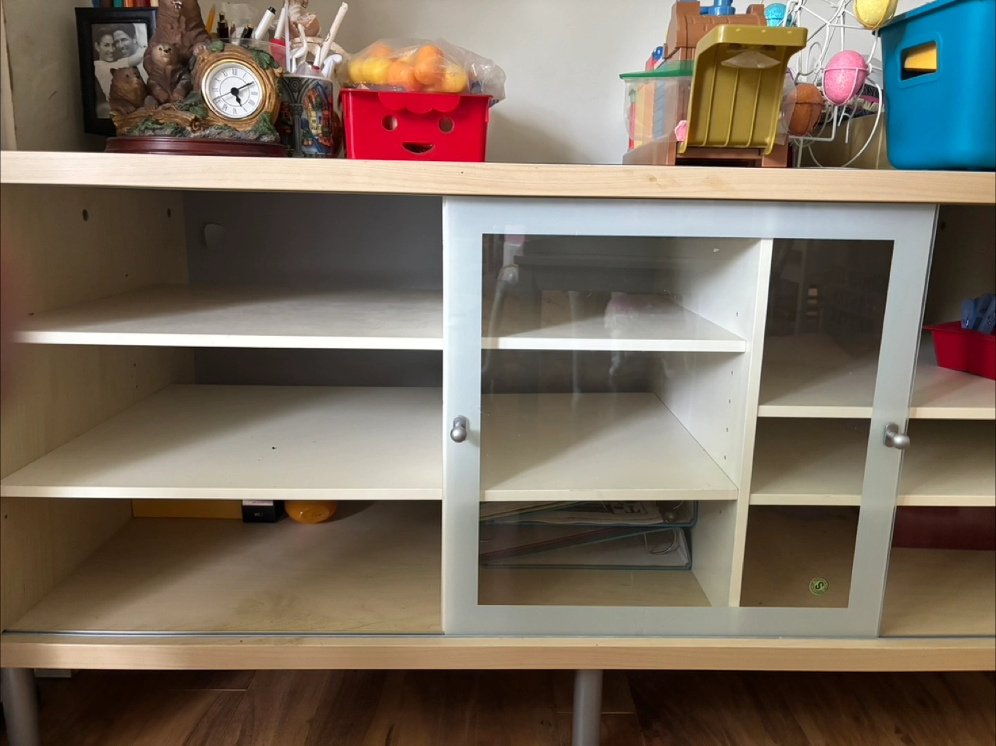Selling a used IKEA Besta storage unit. It has several shelves for storage. Great for organizing your living space or kids room!