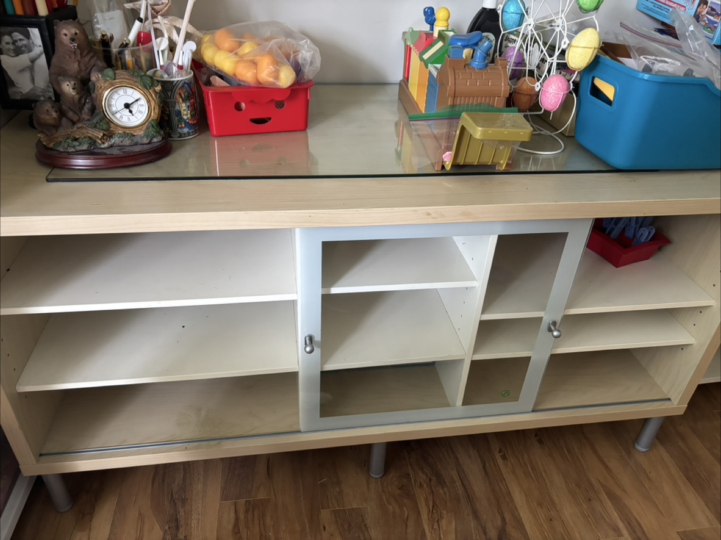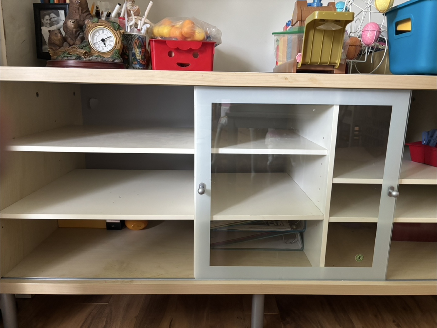 Selling a used IKEA Besta storage unit. It has several shelves for storage. Great for organizing your living space or kids room!