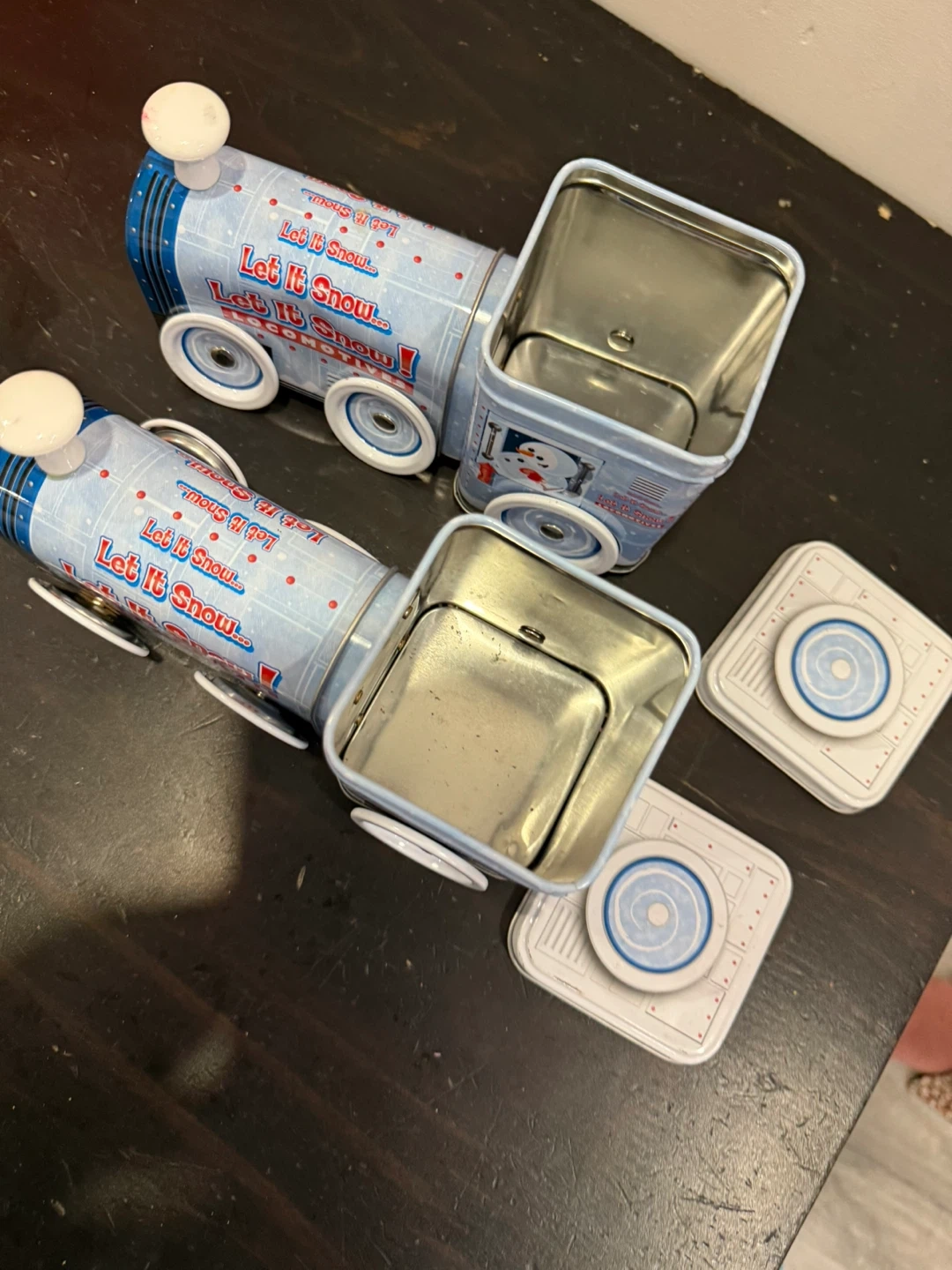 Buy & SellLet It Snow Train Tins - Set of 2Let It Snow Train Tins - Set of 2$5These cute tin boxes are shaped like trains and say "Let It Snow!". They're perfect for storing small items or for holiday decor. Made of tin.ConditionGoodWHERE TO MEETCastle oaksView MapSELLERverifiedPariThorndale1266 reviews0 chats·0 favorites·10 viewsSEND CHAT TO SELLERHi Pari! I’m interested in your listing.Hi Pari! I’m interested in your listing.Get the Karrot app to chatSign In to chat