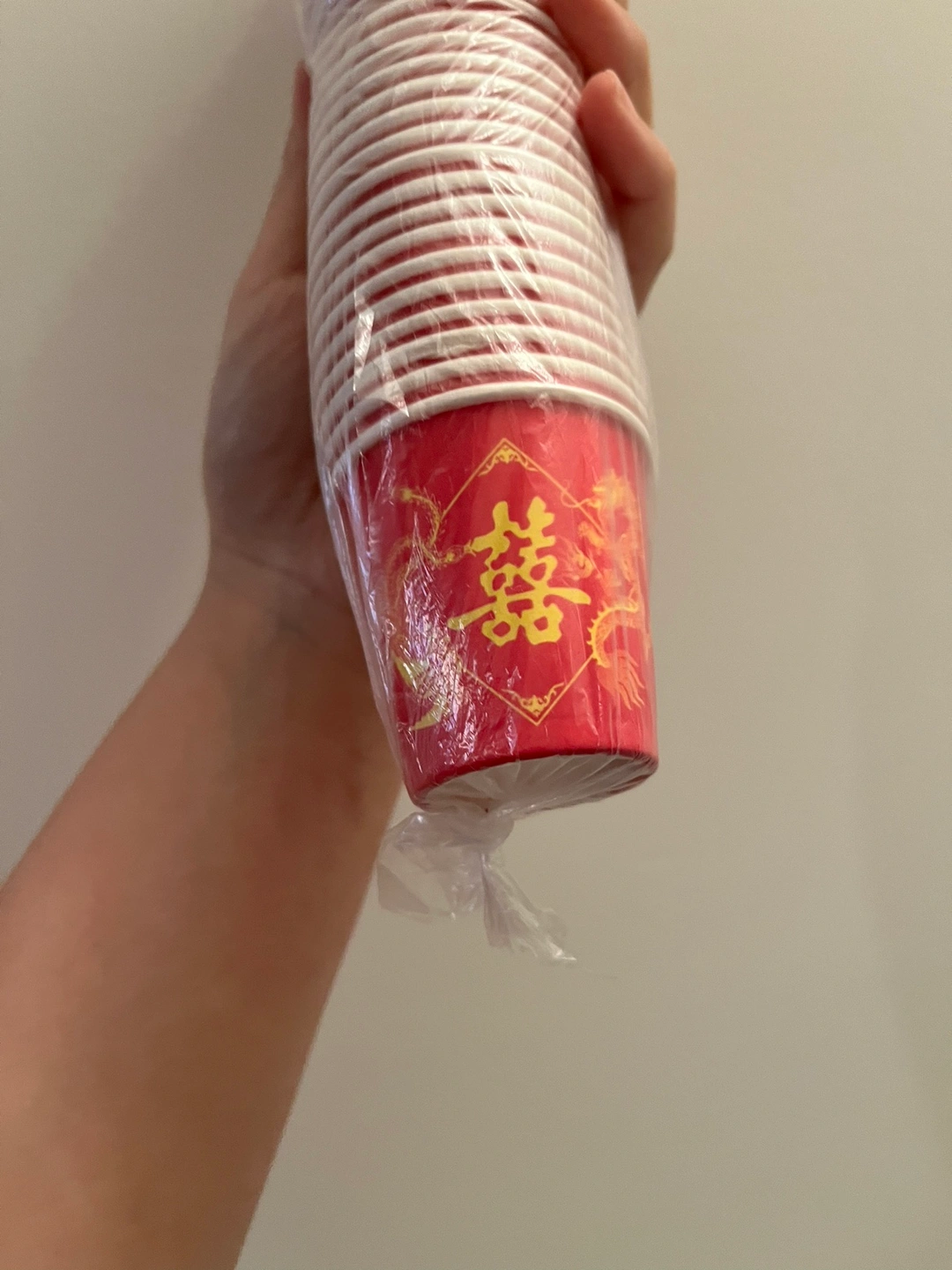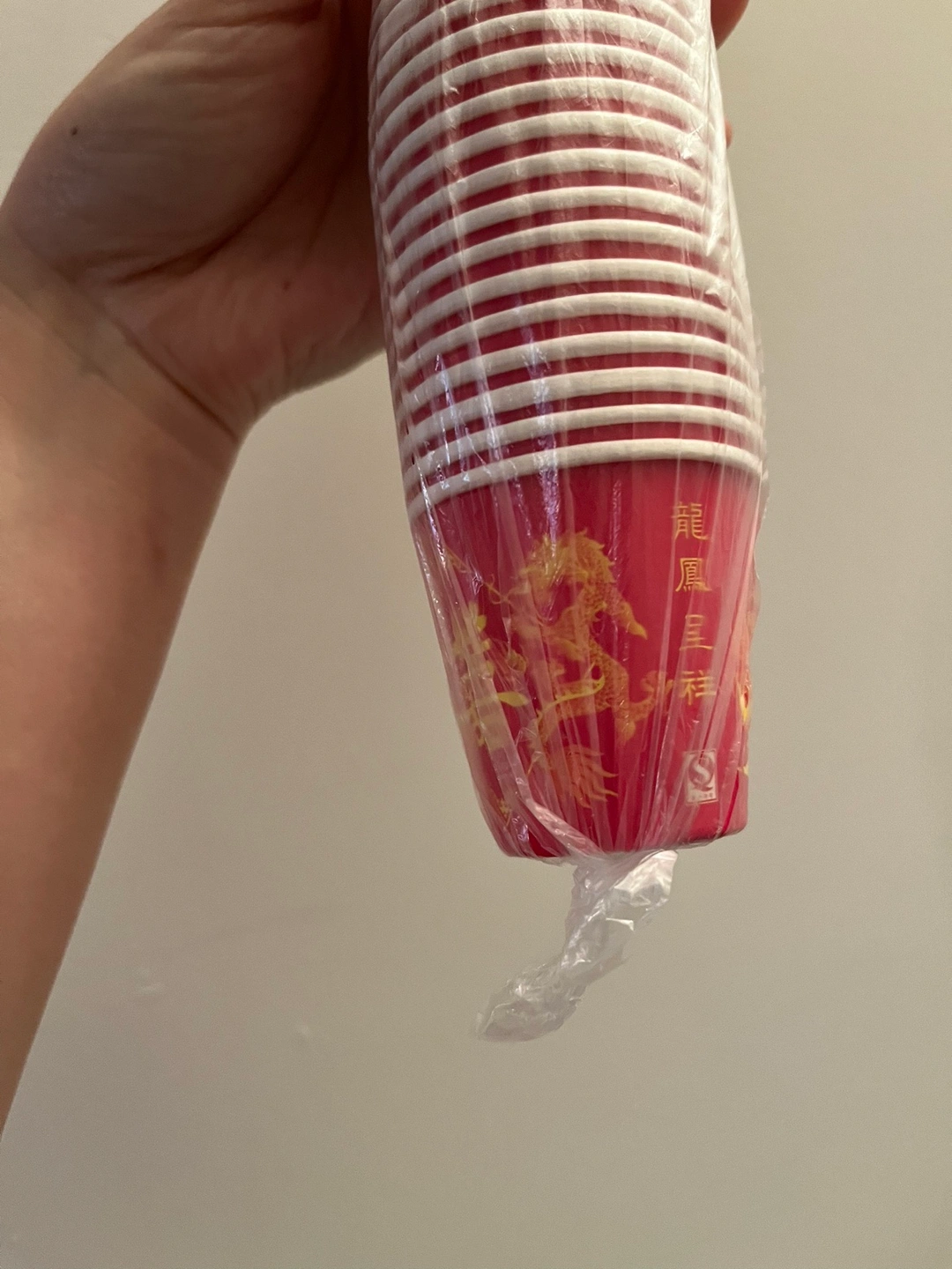 - 44 red disposable small paper cups to serve tea