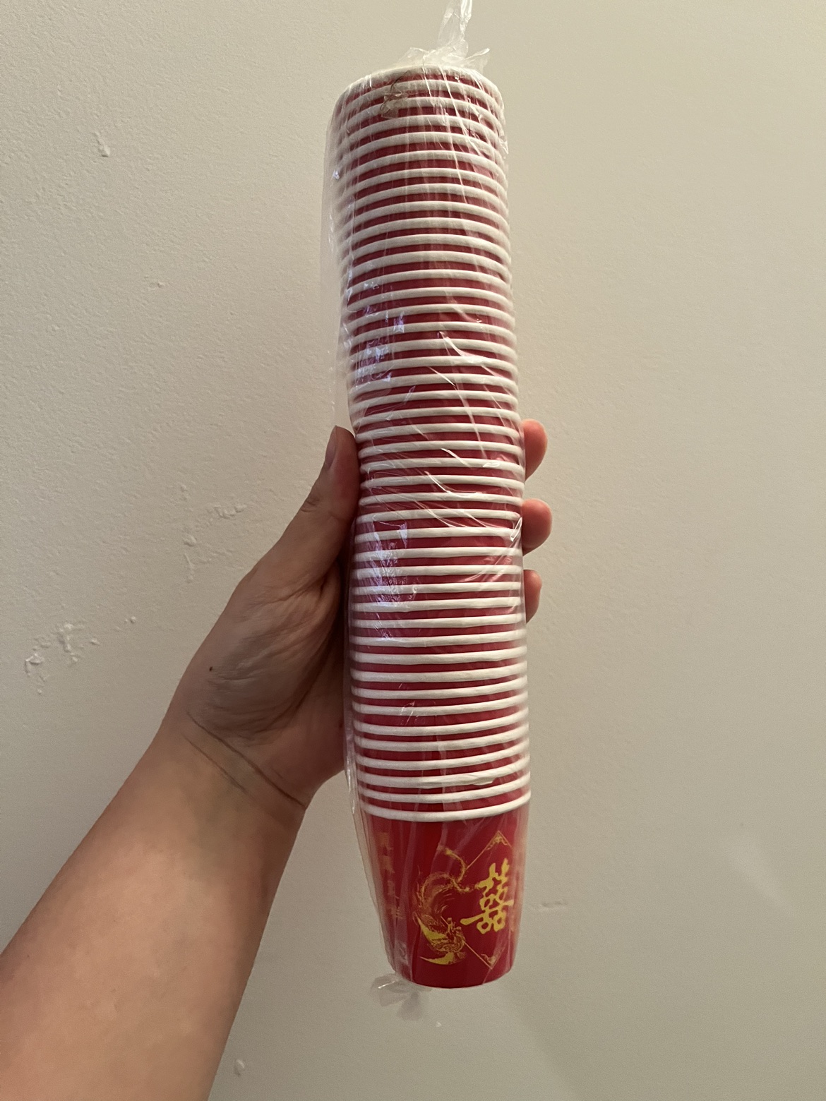 - 44 red disposable small paper cups to serve tea