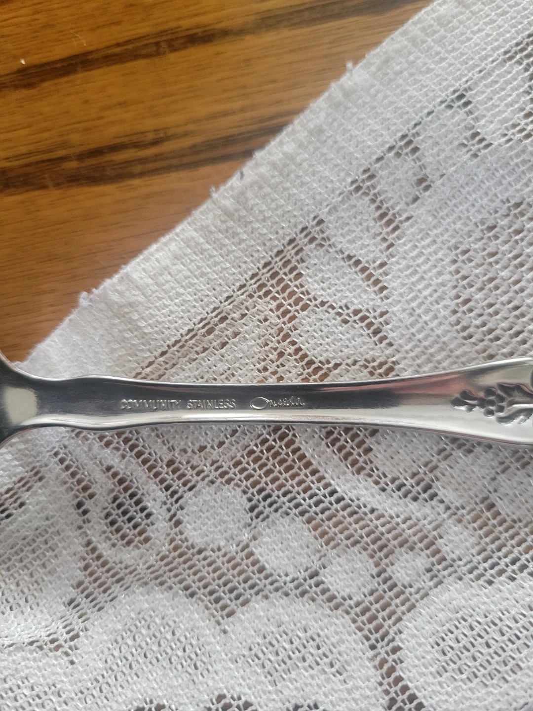 Oneida Community Stainless flatware, perfect for adding a touch of elegance to your dining experience, though it shows some signs of use. The set includes service for 10 with dinner forks, salad forks, spoons, knives, and teaspoons, all neatly stored in a wooden case. This set has been well cared for and is ready to be part of your family's meals for years to come.