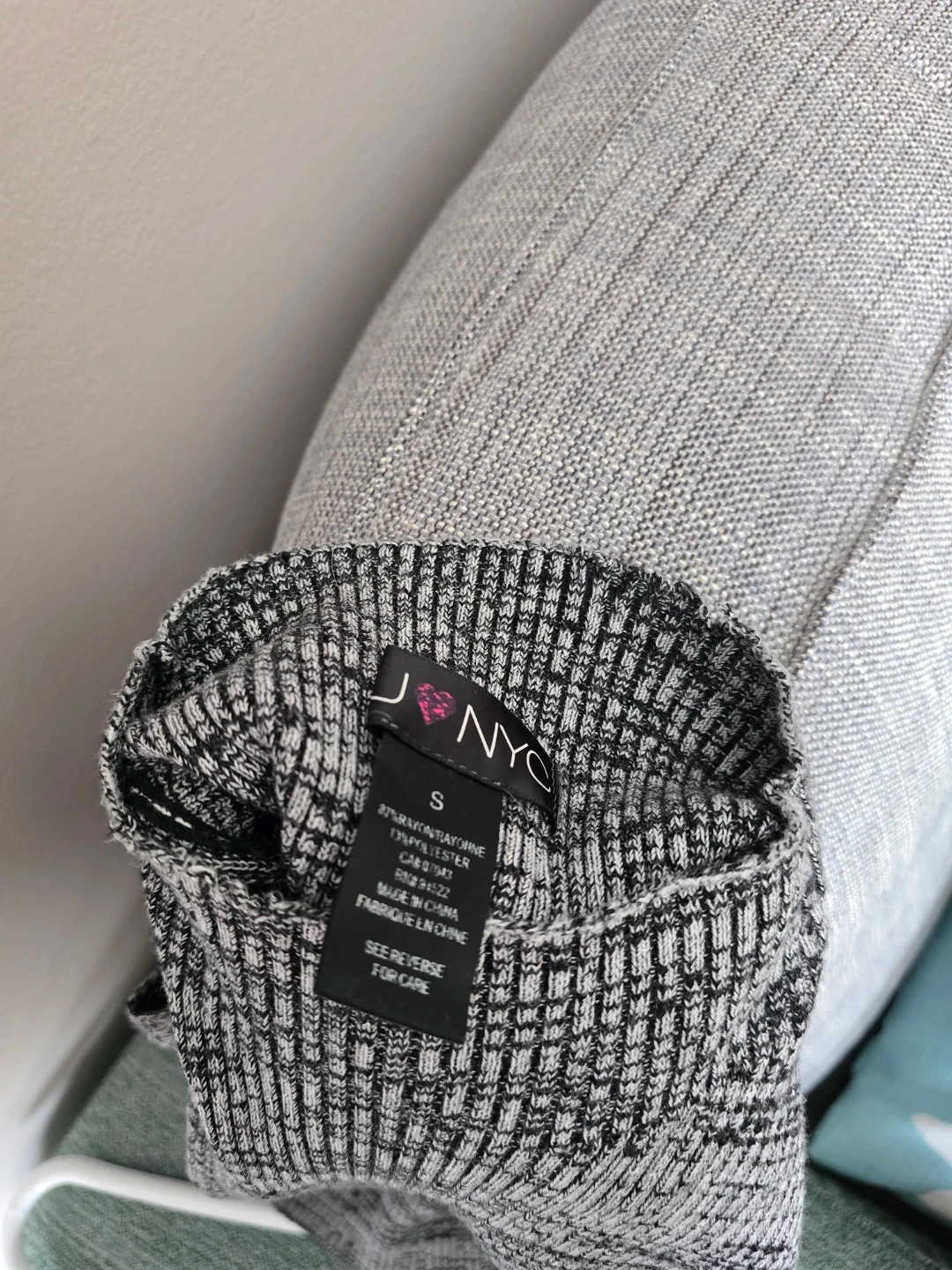 This is a J & NYC sleeveless mock neck top. It's a size small. Made with 87% rayon, 13% polyester.