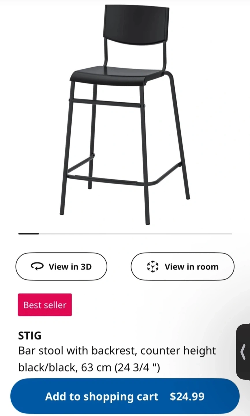 IKEA STIG Bar Stools with Backrest - Black (each 20$)