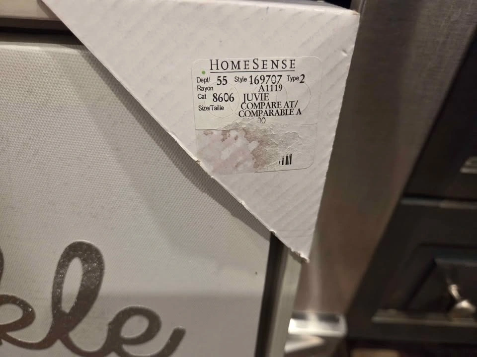 Cute canvas wall art perfect for nursery or kids room. Has 'twinkle twinkle little star do you know how loved you are' message with glittery gray text and stars. White background. Still has corner protectors and tag. 25" across x 22" tall. Pick up in Niagara Falls.