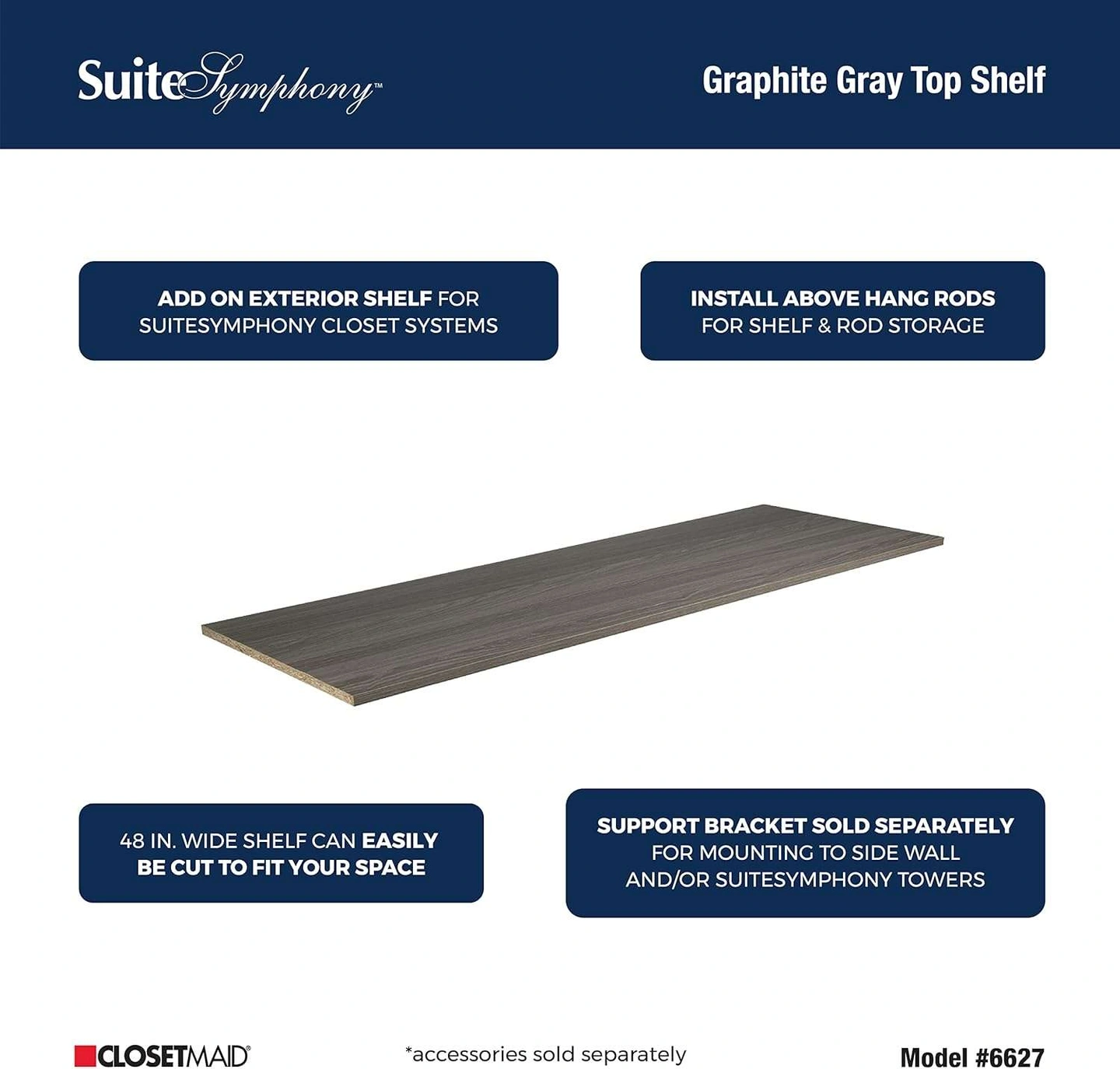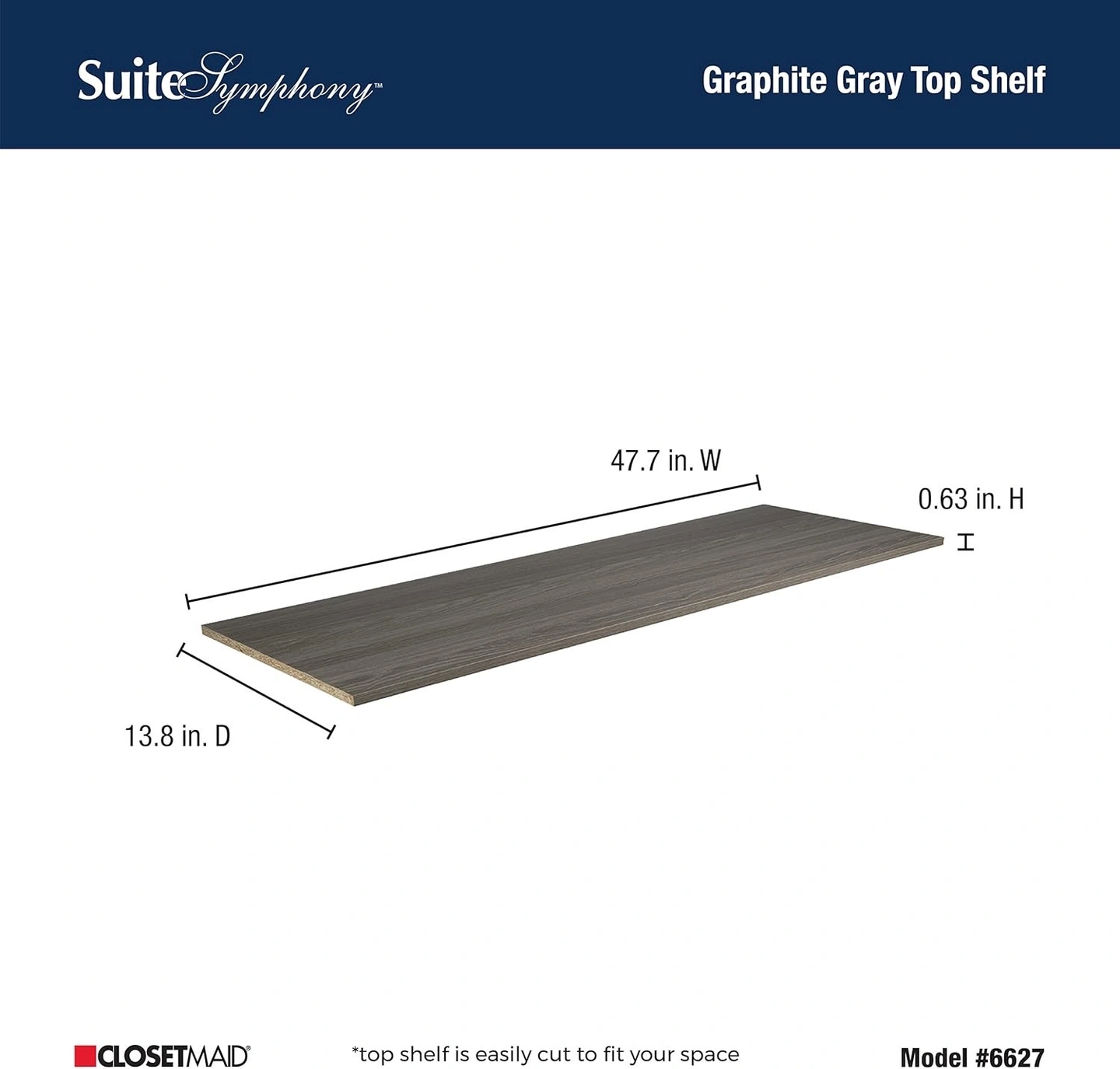 ClosetMaid Graphite Grey, Top Closet Shelf, 48" Wide