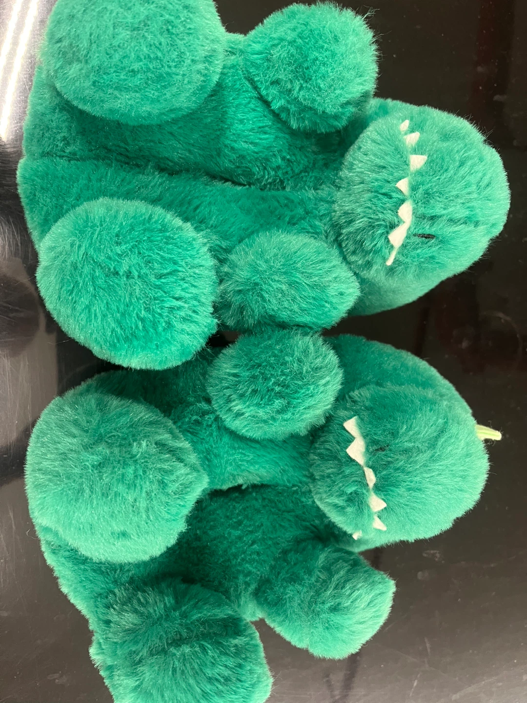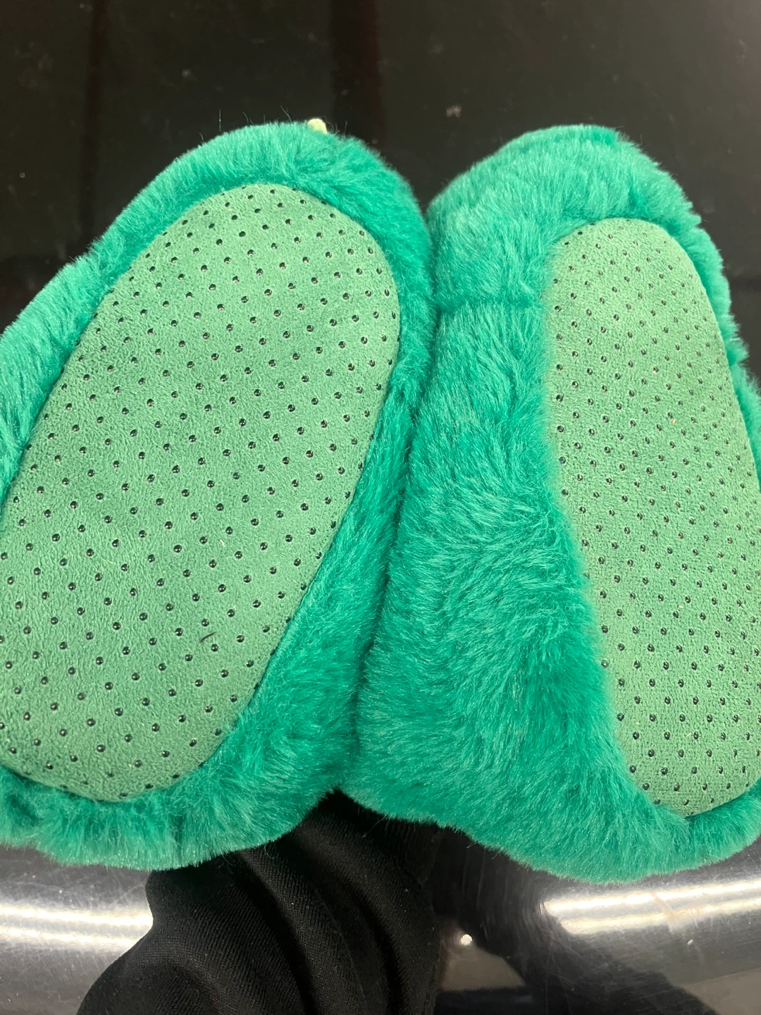 The Children’s Place super cute and comfy green dinosaur slippers! They're a size 8/9 (S) and made of a soft, faux fur material. Perfect for keeping your feet warm and cozy on chilly days!