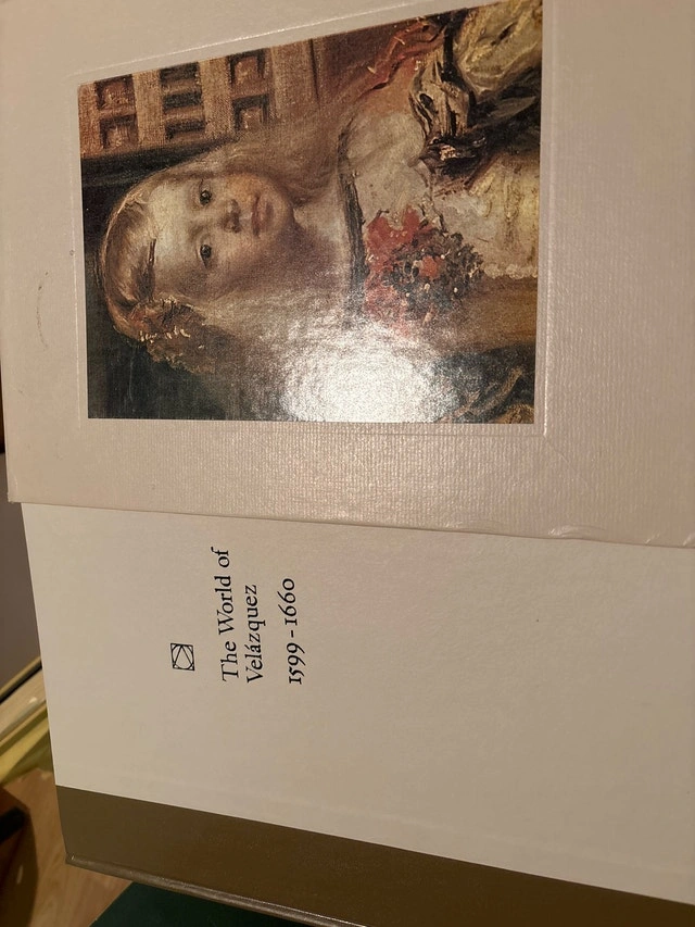 This is a set of 9 Time Life of Art series books featuring Velasquez, Rembrandt, Durer, Cezanne, Manet, Gainsborough, Rubens, Giotto, and Bruegel. They are in like-new condition, barely used, with crisp pages and great outer box covers. Cash accepted. Curbside pickup is available.