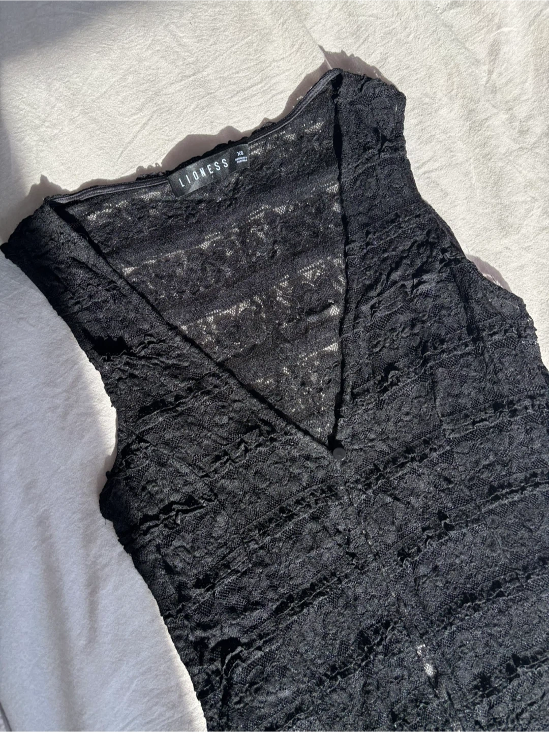 Buy & SellLioness | Black Lace V-Neck Sleeveless Top - XSLioness | Black Lace V-Neck Sleeveless Top - XS$20•Can fit a size XS - S •See through •Has one button •Great conditionConditionGoodBrandLionessWHERE TO MEETCheck LocationView MapSELLERRachaelDownsview23720 reviews0 chats·0 favorites·4 viewsSEND CHAT TO SELLERHi Rachael! I’m interested in your listing.Hi Rachael! I’m interested in your listing.Get the Karrot app to chatSign In to chat